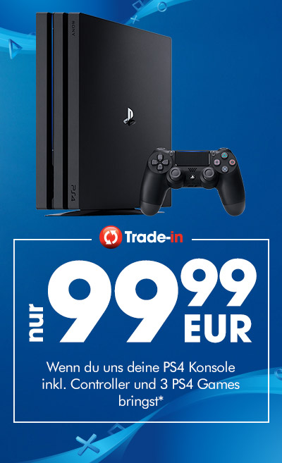 - Falls du deine gebrauchte PS4 erst bei Abholung der PS4 Pro abgeben möchtest, so ist dies auch möglich. Jedoch muss die Anzahlung in Höhe von 99,99 € bereits bei Reservierung getätigt werden.
