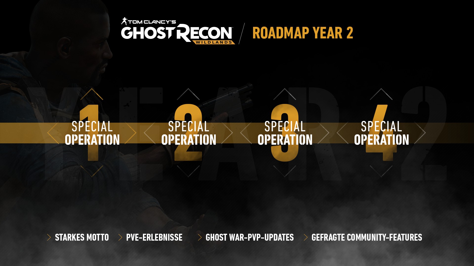 Ubisoft kündigte an, dass "Year 2" von Tom Clancy's Ghost Recon Wildlands erscheint und den Spielern sowohl in der Kampagne als auch in der Ghost War PvP-Erfahrung neue kostenlose Inhalte bieten wird. Das erste große Update mit dem Titel Special Operation 1 wird am 10. April auf der PS4 erscheinen.