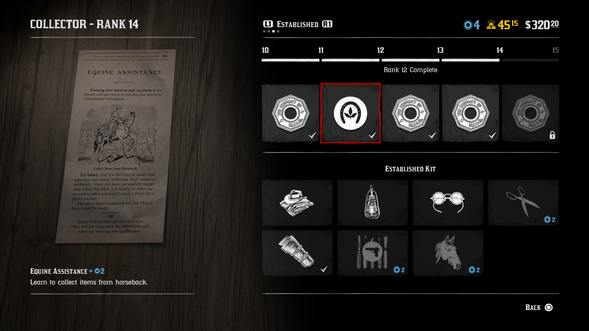 Sammelt einzelne Stücke und verkauft sie direkt an Madam Nazar oder sammelt ganze Sets für teurere Verkäufe. Mit eurem Fortschritt schaltet ihr verbesserte Suchfähigkeiten, nützlichere Werkzeuge wie einen Metalldetektor, Belohnungen wie erhöhte Tragekapazität, die Fähigkeit während des Reitens Kräuter zu sammeln und mehr frei.