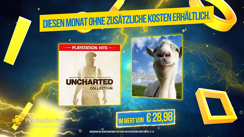 Während die Meisten wahrscheinlich noch im Bett liegen nach der Silvesternacht, hat Sony jetzt seine PlayStation Plus Spiele für den Januar bekannt gegeben. Demnach dürfen wir uns am 7. Januar auf Uncharted: The Nathan Drake Collection und Goat Simulator freuen.