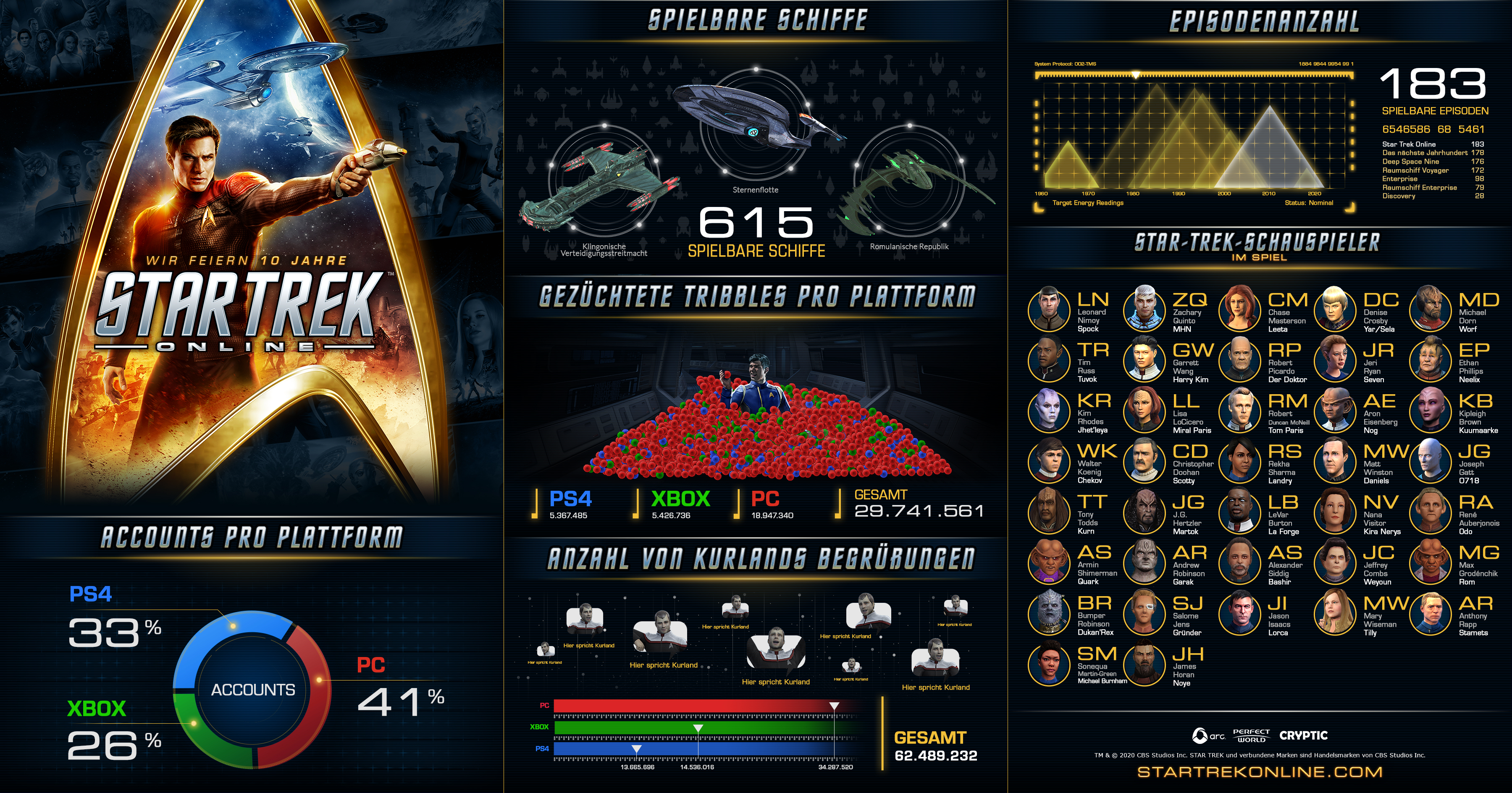 Zudem wurde zur Feier des Tages, Star Trek Online gibt es bereits seit 10 Jahren (knappe vier davon auf der PS4), eine hübsche Infografik veröffentlicht.