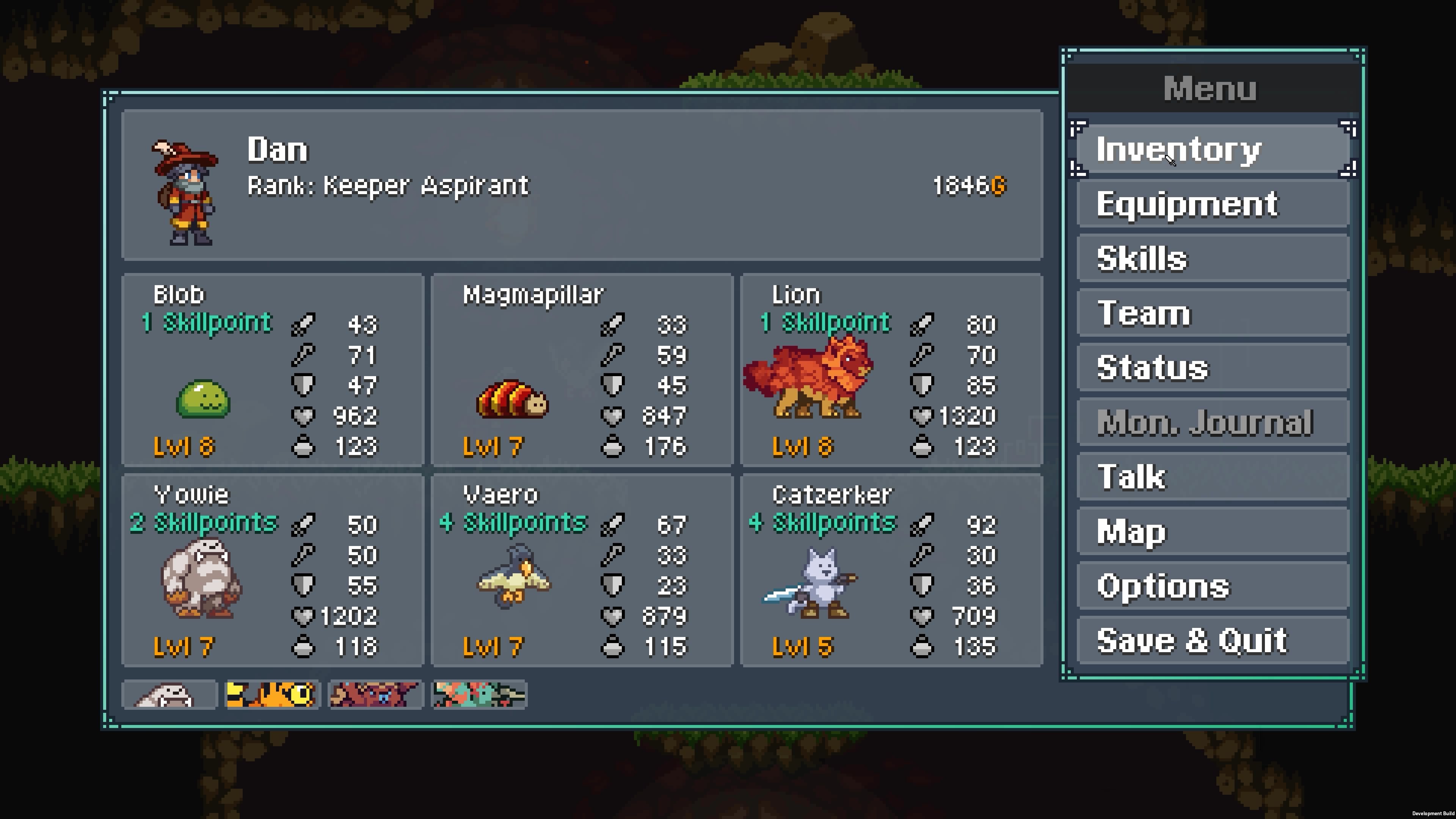 Aber worum geht es? Als jüngster Erbe einer langen Linie von Monster-Wächtern muss man die Welt vor einer drohenden Gefahr schützen. Dazu reist man in 2D Landschaften umher (Stichwort Metroidvania) und fängt Monster. Diese kann man dann Züchten und Trainieren, um sie dann in 3 gegen 3 Kämpfen antreten zu lassen.