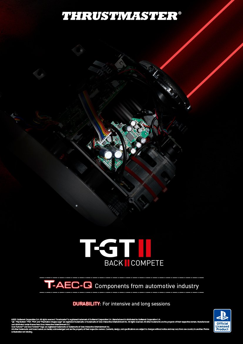 Das T-GT II verwendet eine einzigartige Technologie, welche die Berechnung des Kurvendriftens in Echtzeit (T-DCC) ermöglicht, wodurch die Reaktionsfähigkeit des Lenkrads und des Autos während des Spiels in allen Situationen erhalten bleibt. Diese eingebaute T-DCC-Funktion erlaubt es dem Fahrer, seine Aufmerksamkeit auf die Ausführung sehr präziser Steuerbewegungen zu richten, um fahrerisch immer einen oder zwei Schritte voraus zu sein.