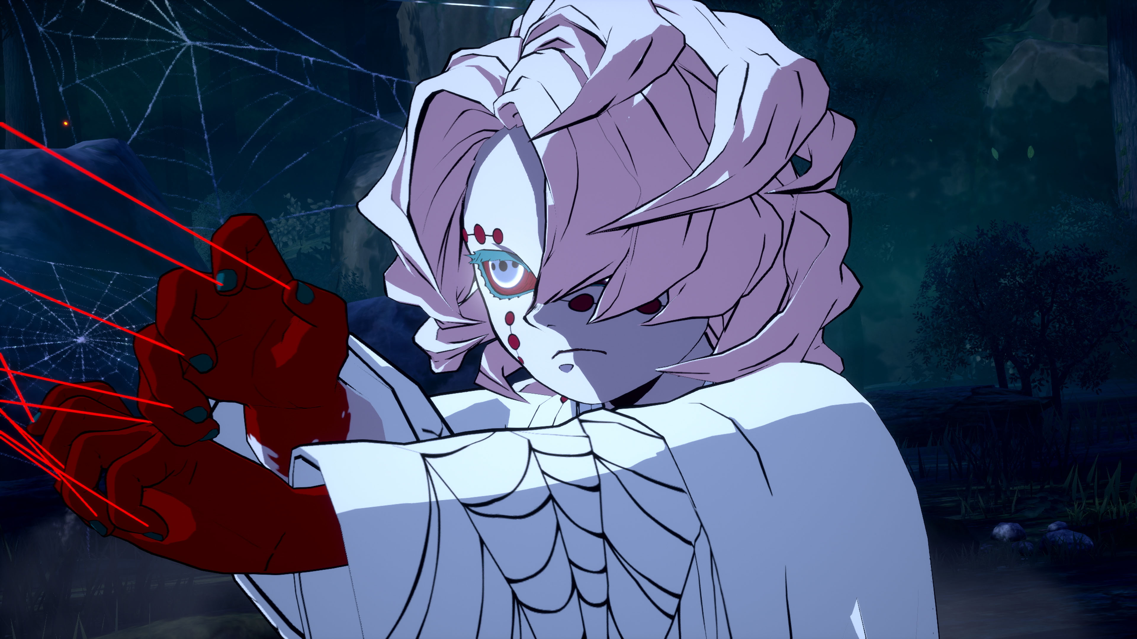 Beide sind Mitglieder der „Mächtigen zwölf Kizuki“: Rui (Lower Five), der Dämon von Mt. Natagumo und Akaza (Upper Three), der sein Debut im Kinofilm Demon Slayer -Kimetsu no Yaiba- Mugen Train gab. Akaza will will den Gipfel seiner Kraft erreichen.