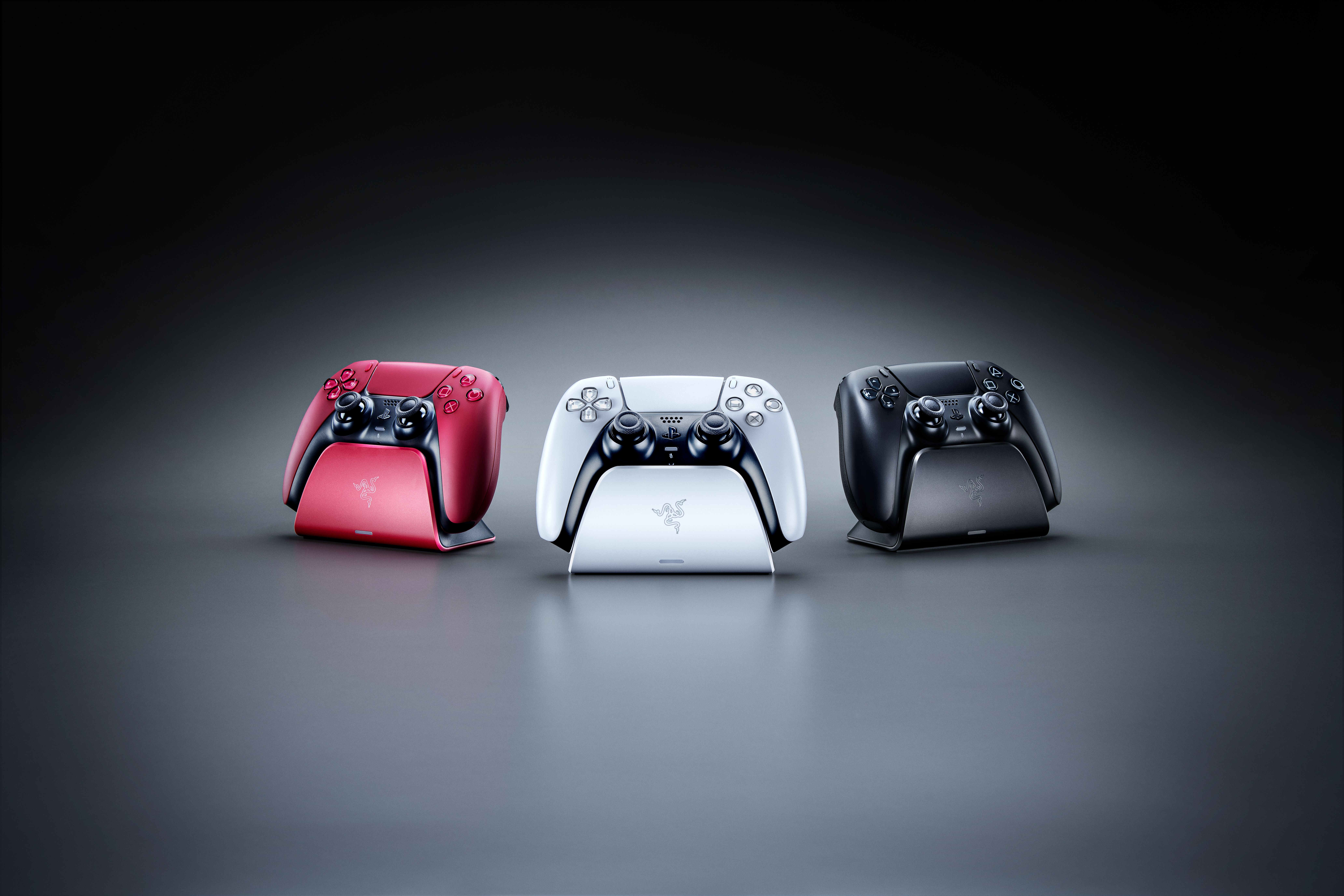 Außerdem hat Razer heute seine Quick Charging Stands angekündigt. Die Ladestationen passen sich der Farbgebung der futuristisch designten PS5 DualSense Controller an. Der Razer Quick Charging Stand lädt den Controller in unter drei Stunden auf und verspricht damit geringe Pausen zwischen Gaming-Sessions. Die Ladestation ist in den Farben Weiß, Schwarz und Rot erhältlich.
