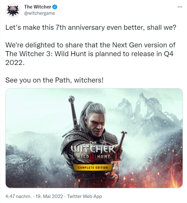 Eigentlich sollte das Next Gen Update zu The Witcher 3 bereits im Sommer erscheinen, doch wurde das Unterfangen (wohl auch durch den russischen Angriffskrieg auf die Ukraine) dann doch erst einmal verschoben. So wie es aussieht, wurde die Arbeit von einem externen Dienstleister zurück zu CD Project Red transferiert. Nach dem Neu-Evaluieren des Arbeitsaufwandes gibt es jetzt doch noch eine versöhnliche Nachricht. Pünktlich zum 7. Jubiläum soll nun die PS5 Fassung im 4. Quartal 2022 erscheinen.