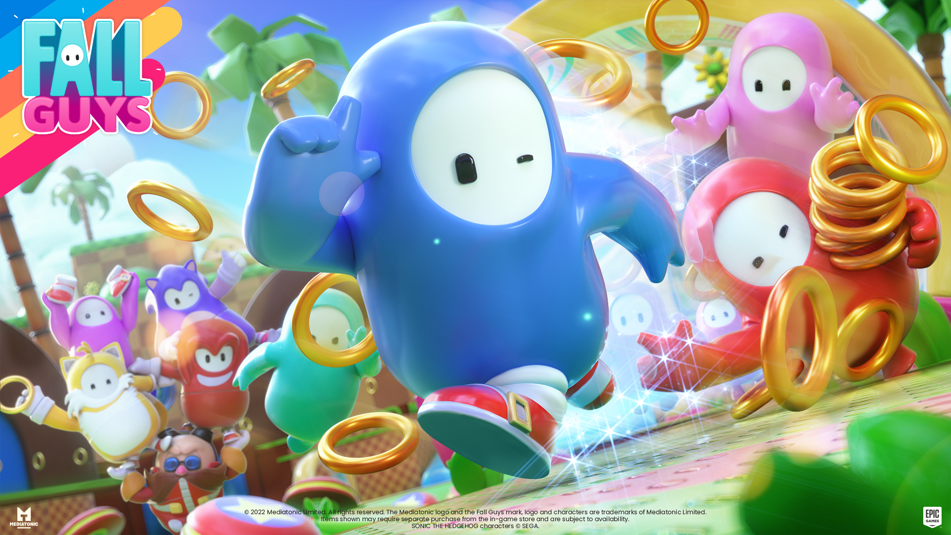 Um 30 Jahre Sonic the Hedgehog zu feiern, führt Fall Guys ein brandneues Sonic-Level und neue Outfits ein. Wird Sonic durch den Parcours rasen oder wird Knuckles einen Sturzflug hinlegen? Für welche Bohne sich die Spieler auch entscheiden, Spaß ist in der neuen Zone garantiert.