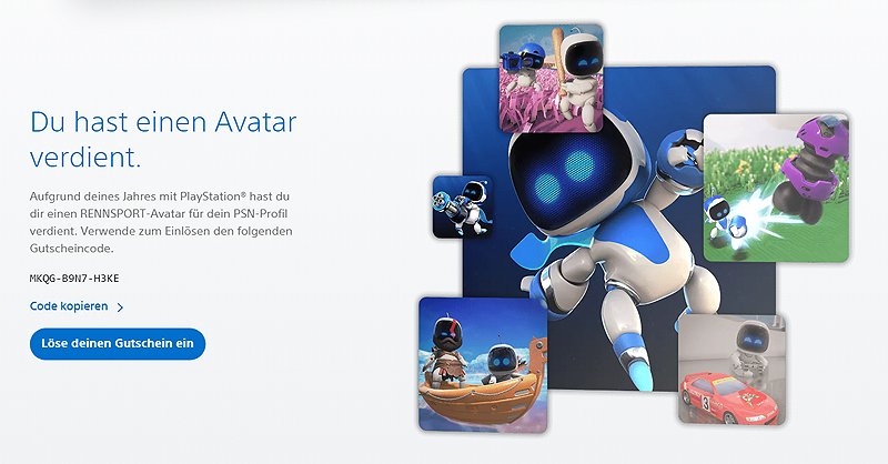 PS: Einen entsprechenden Avatar bekommt man auch per Code - meiner war der für Rennspiele (Astro Bot mit Namco Auto) - der Code ist mehrmals verwendbar.