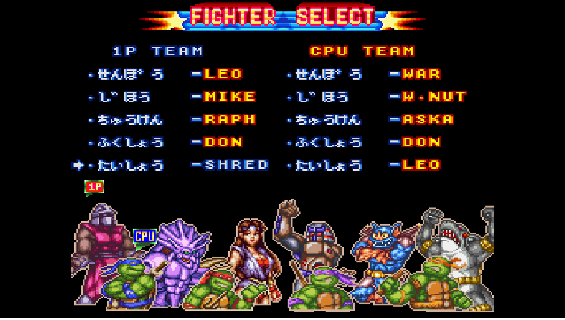 - Eine Verbesserung wurde zu SNES und Super Famicom TMNT: Tournament Fighters hinzugefügt. Ultimative Angriffe können nun im Story-Modus EIN / AUS gestellt werden.