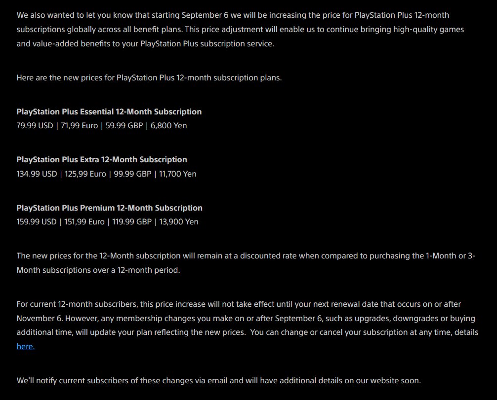 Mit dem "spektakulären" September Line-Up für PlayStation Plus Essential werden auch gleich mal die Preis für die PlayStation Plus Abos erhöht. Als Grund für die Erhöhung werden Kosten für die vielen Benefits und hochqualitative Games angegeben.