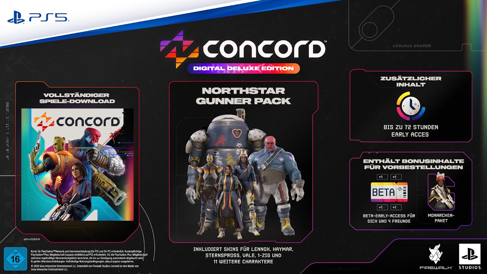 Bei Concord handelt es sich um 5v5-Multiplayer-Hero-Shooter aus der First-Person-Perspektive, bei dem man in die Haut der illustren Mitglieder der Northstar-Crew schlüpft, einer Gruppe von Söldnern, die als “Freegunner” bekannt sind. Das Spiel erscheint am 23. August weltweit für die PS5.