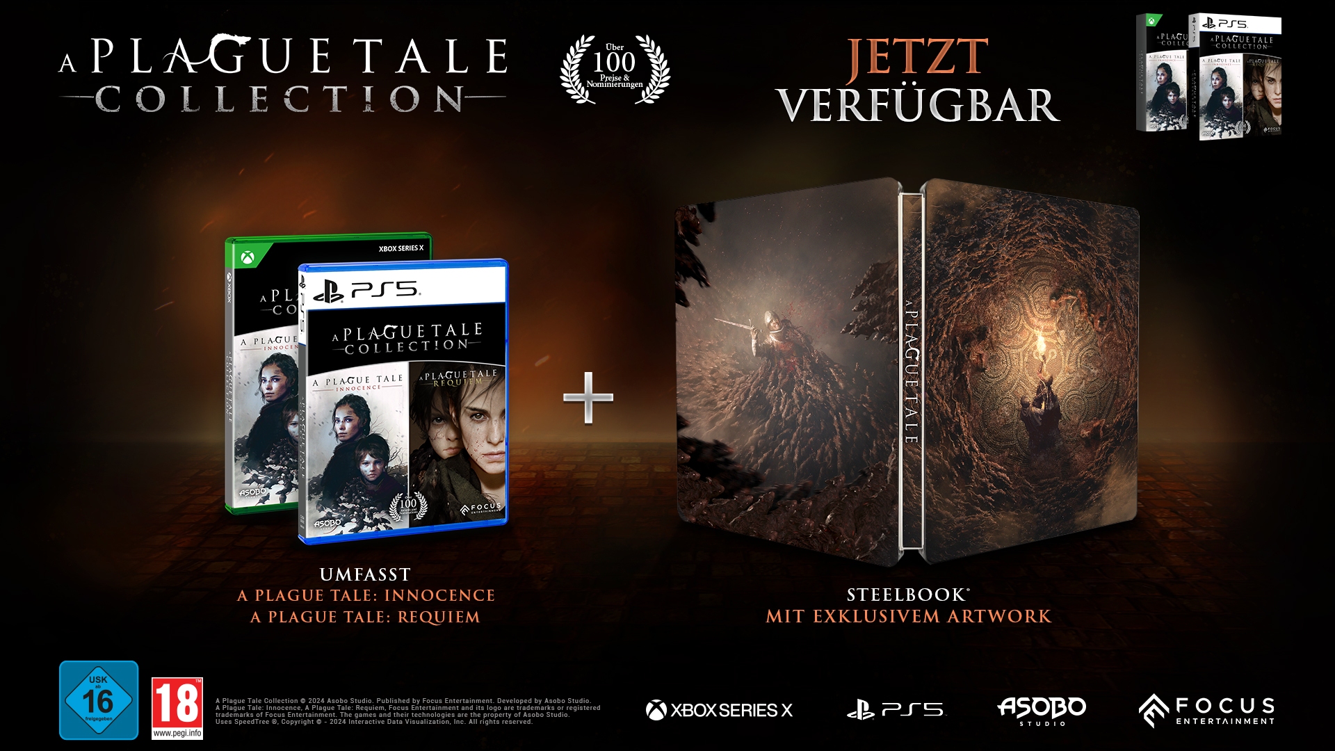 Focus Entertainment und Asobo Studio haben eine physische A Plague Tale Collection veröffentlicht. Die Sammlung enthält die beiden Spiele A Plague Tale: Innocence & A Plague Tale: Requiem, sowie ein Steelbook mit einem exklusiven Artwork.
