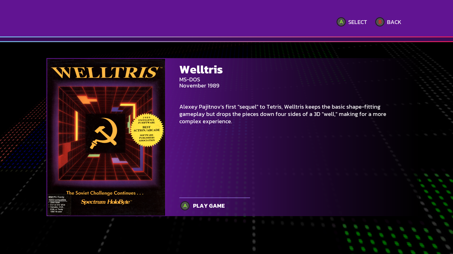 Neues Spiel: Welltris (Spectrum Holobyte, MS-DOS)