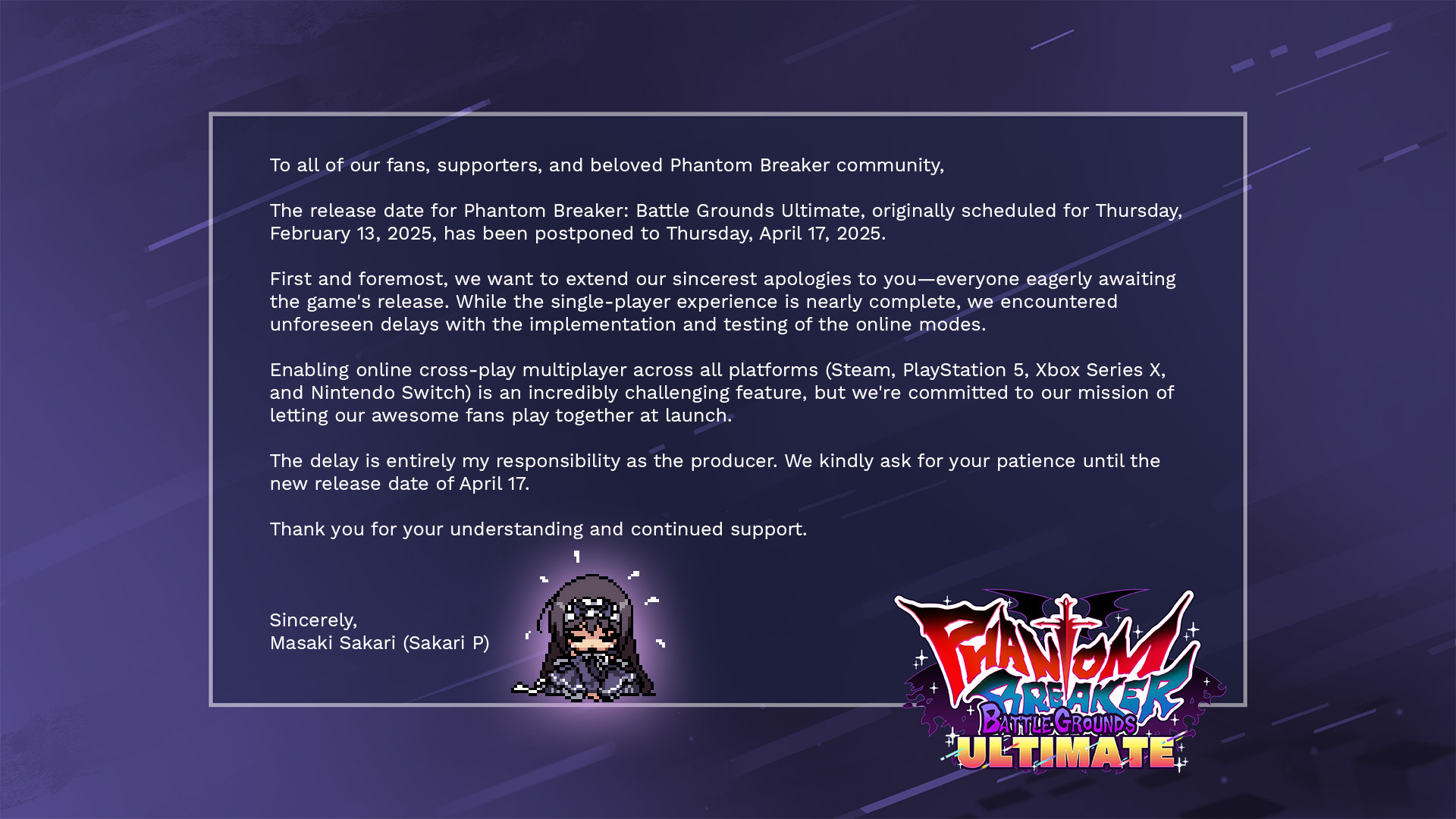 Rocket Panda Games hat ein paar schlechte Neuigkeiten zur Veröffentlichung von Phantom Breaker: Battle Grounds Ultimate. Ursprünglich war die Veröffentlichung für den 13. Februar 2025 angesetzt. Das Beat'em Up hat nun ein aktualisiertes Veröffentlichungsdatum vom 17. April 2025, da das Entwicklerteam etwas mehr Zeit benötigt, um das Spiel fertigzustellen.