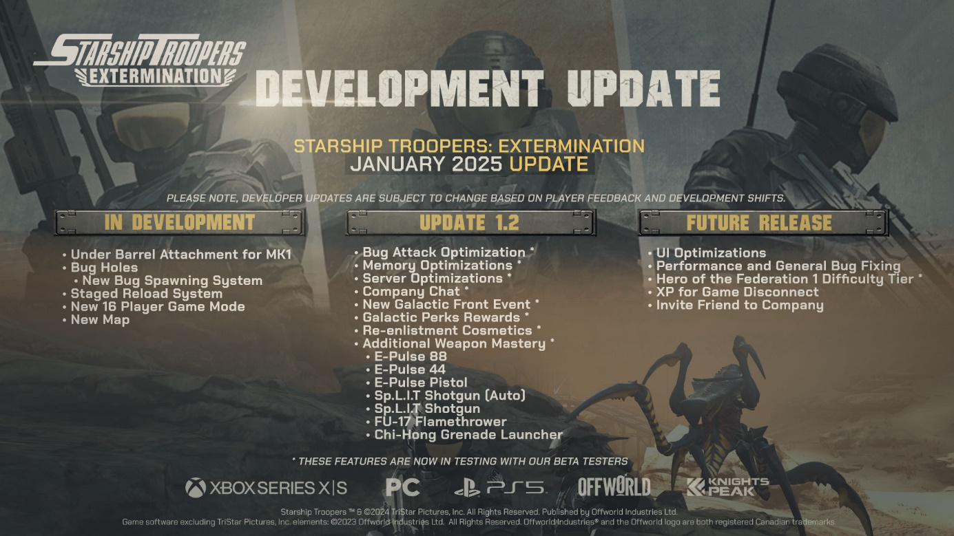 Mit dem neuesten Patch für Starship Troopers: Extermination stellen die Entwickler einmal mehr ihr kontinuierliches Engagement unter Beweis, das Spiel zu verbessern und Probleme zu beheben. Das Team hat bereits UI-Fokus-Optimierungen in Update 1.3 angekündigt, um Fälle zu beheben, in denen die Tasten „Y“ und „Dreieck“ auf Controllern nicht reagieren. Darüber hinaus wurden gelegentliche Audioverzerrungen während der Angriffe von Bug-Schwärmen auf der PlayStation sowie in seltenen Fällen Ausrüstungsbenachrichtigungen festgestellt, die nicht richtig gelöscht werden.