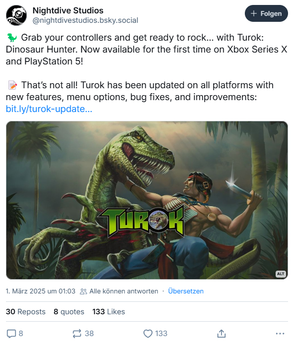 Die Nightdive Studios haben dem Turok Remaster auf der PS4 ein umfangreiches Update spendiert. Neben vielen spieltechnischen Verbesserungen und neuen Grafikoptionen, gibt es jetzt auch eine native PS5 Fassung des Spiels. DIe kompletten Patch-Notes könnt ihr beid er Quelle nachlesen.