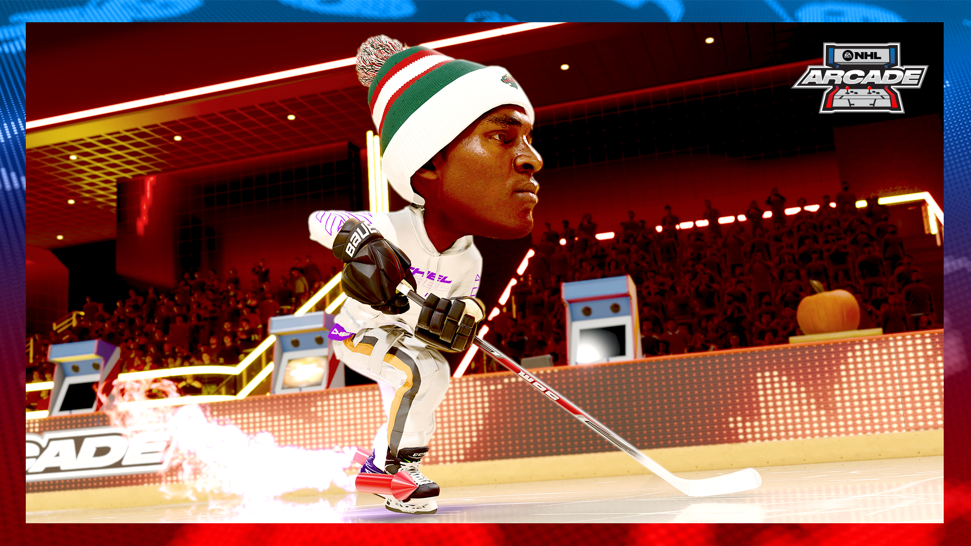 NHL Arcade ist ein zeitlich begrenztes 3-gegen-3-WoC-Event, das Big Heads in einer modernisierten Version des temporeichen Arcade-Klassikers zurückbringt. Die Teams kämpfen darum, als erste fünf Tore zu erzielen, ohne Glas, Regeln oder Spielunterbrechungen. Alle Spieler:innen haben den gleichen OVR-Wert und die gleiche Größe/Gewicht, so dass Power-Ups und Hindernisse den wesentlichen Unterschied ausmachen. Fans können sich mit Freunden zusammentun oder als solo bzw. Goalie ihres Teams in das Spiel einsteigen.