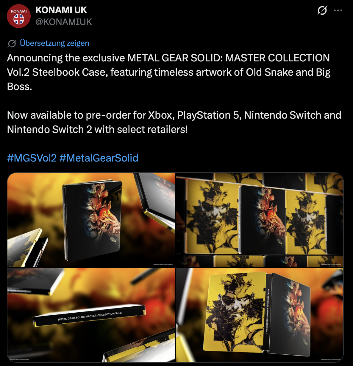 Konami gab heute bekannt, dass man in Kooperation mit einigen Händlern in Kürze eine Steelbook Version der zweiten Metal Gear Solid Collection vorbestellen kann. Details zum Datum und Preis stehen aktuell noch aus. Dennoch könnt ihr bereits jetzt schon einen Blick auf das gute Stück werfen: