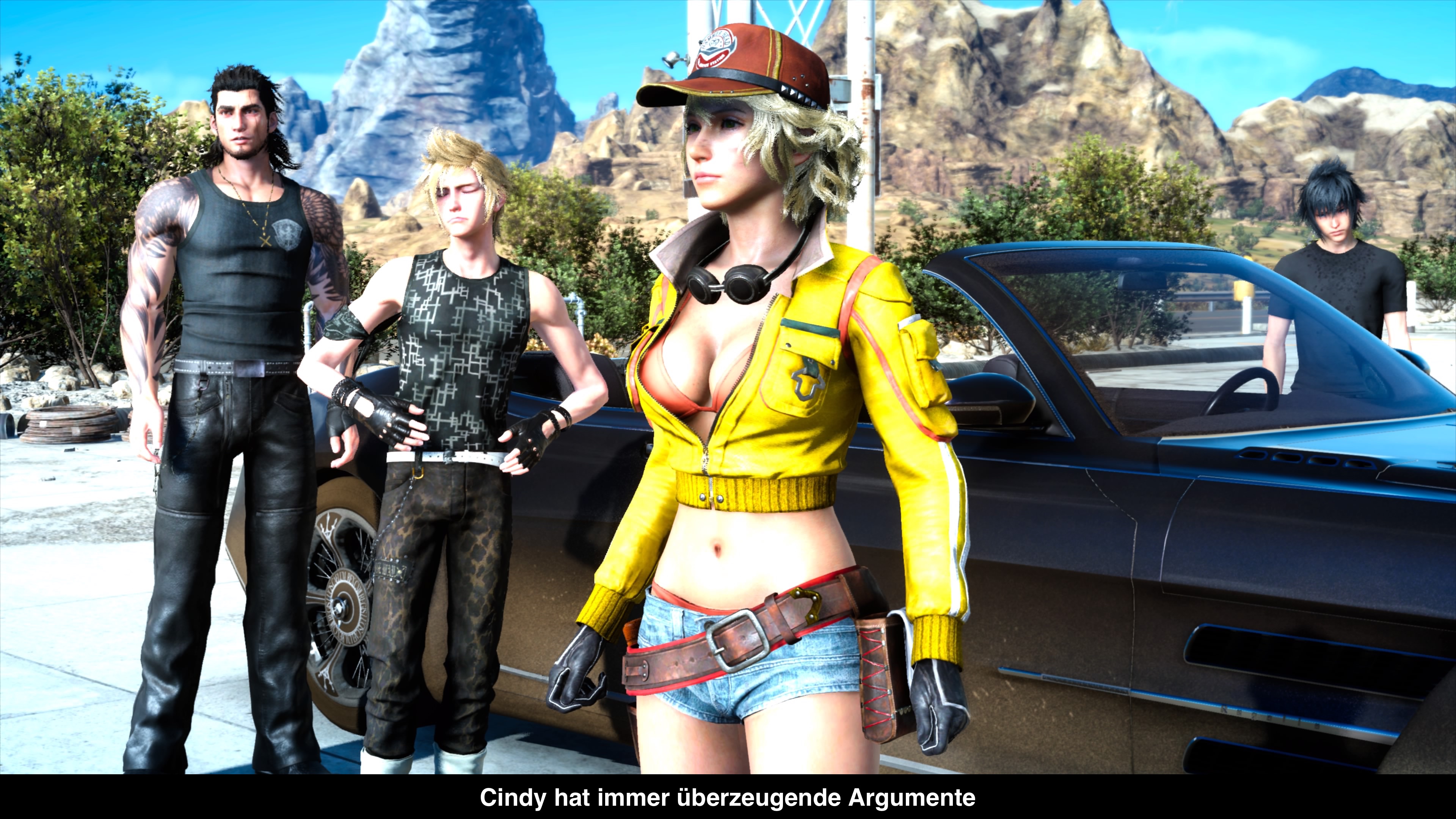 Wie so viele andere Spiele geht auch Final Fantasy XV den Weg Richtung Open World. Also darf man sich neuerdings komplett frei in der Welt bewegen und nahezu jeden Punkt erreichen, den man auch sehen kann. Das bedeutet also auch, dass der Fortschritt nicht mehr vom Spiel vorgegeben wird. Wer keine Lust mehr auf die Hauptquest hat, kann sich an einer Reihe an Sidequests bedienen. Diese sind leider so lieblos und austauschbar, wie schon lange nicht mehr. Obwohl man der zukünftige König eines mächtigen Reichs ist, welches gerade vom Feind zerstört wurde, hat man offenbar genug Zeit um für jeden Bewohner des Planeten Kleinigkeiten zu erledigen. Mal darf man für einen älteren Herren in dem Nachbarort einkaufen gehen, mal muss man bunte Frösche fangen oder einfach für jemanden Fotos machen, damit er sie gewinnbringend verkauft. Viel mehr als diese Lieferquests hat das Spiel nicht zu bieten. Die interessanteste Sidequest dreht sich wohl um eine Nudelart, was schon alles sagt. Ansonsten gibt es noch Jagdquests, die euch eben ein paar Jagdziele aufgeben. Nicht sehr überraschend und relativ solide. Leider kann man nicht mehr als eine Jagdquest annehmen, was zu vielen unnötigen Laufwegen führt. Diese kann man übrigens mit dem Regalia, dem Auto des Königs überwinden. Dabei übernimmt Ignis das Steuer oder ihr selbst, wobei es spielerisch kaum einen Unterschied macht. Selbst könnt ihr nämlich nur die Fahrtrichtung vorgeben und Gas geben oder Bremsen. Die Straßen kann man demnach nicht verlassen. Dafür gibt es Chocobos, die man mieten kann zum Reiten. Hier kann man größere Distanzen durchaus fix überwinden.