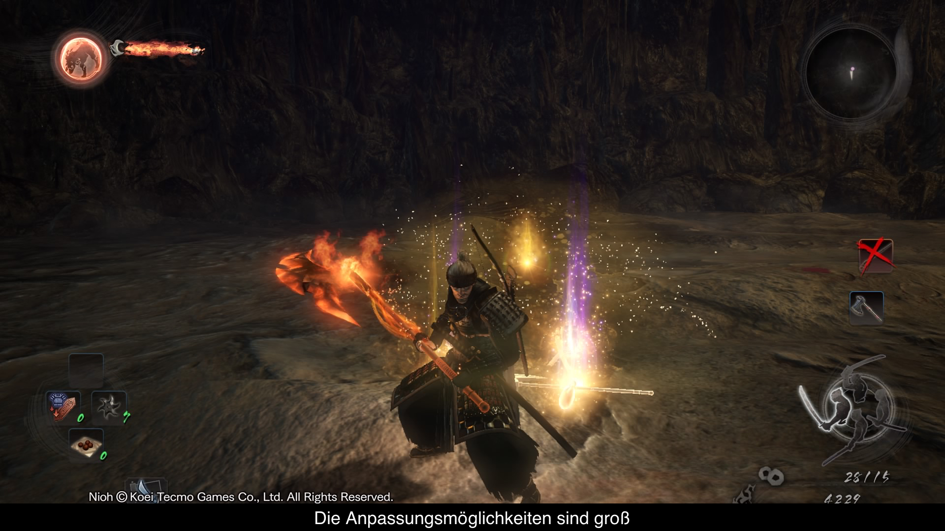 Oh ja! Das Kampfsystem ist die absolute Liebe eines jeden Hack`n Slash Spielers. Es ist weitaus komplexer als andere Genre Vertreter, durch den Skill Tree gibt es sehr viele Variationen, die darin münden in dem jede Waffe im Spiel nochmal eigene Skills hat. Wir sind nicht nur auf den leichten Angriff und schweren Angriff angewiesen, sondern können Frontal angreifen, von der Seite oder von hinten, das alles noch unter den verschiedenen Haltungen die es gibt. Einmal niedrig, mittel und hoch. Dadurch ergeben sich nochmals mehr Möglichkeiten, als ich es je in einem anderen Spiel dieses Kaliber gesehen habe. Zu all dem kommt noch die Ki dazu. Ki ist die Stamina im Spiel, die sich unterhalb der Lebensleiste befindet. Ohne Ki geht nichts in Nioh. Viel schlimmer: wenn die Ki komplett verbraucht ist, braucht William einen Moment (der gefühlt ewig dauert) um wieder agieren zu können. So dürfen wir nicht verschwenderisch sein und müssen clever vorgehen. So sollte man nicht all zu sicher sein, weil man ja automatisch davon ausgeht, hey ich habe die Alpha/Beta gespielt, ich weiß was ab geht. Ein Fehler! Niemals die Gegner unterschätzen, nicht mal die kleinsten unter ihnen. Zu den Highlights des Spiels gehören mit großem Abstand die Bosskämpfe! Eines der größten Stärke der Entwickler zeigt sich darin, wie heftig einige Bosse zum Teil sind. Während man sich am Anfang noch einigermaßen zu recht findet und keine allzu lange Anlaufzeit benötigt, wird dies umso später noch viel notwendiger sein. Da hängt man dann auch gut und gerne mal länger an einem Boss, bis man die richtige Strategie raus haut um ihn lang zu machen. Aber mit ein wenig Übung ist alles machbar, auch hier in Nioh. Es kann nur etwas....viel Zeit in Anspruch nehmen.
