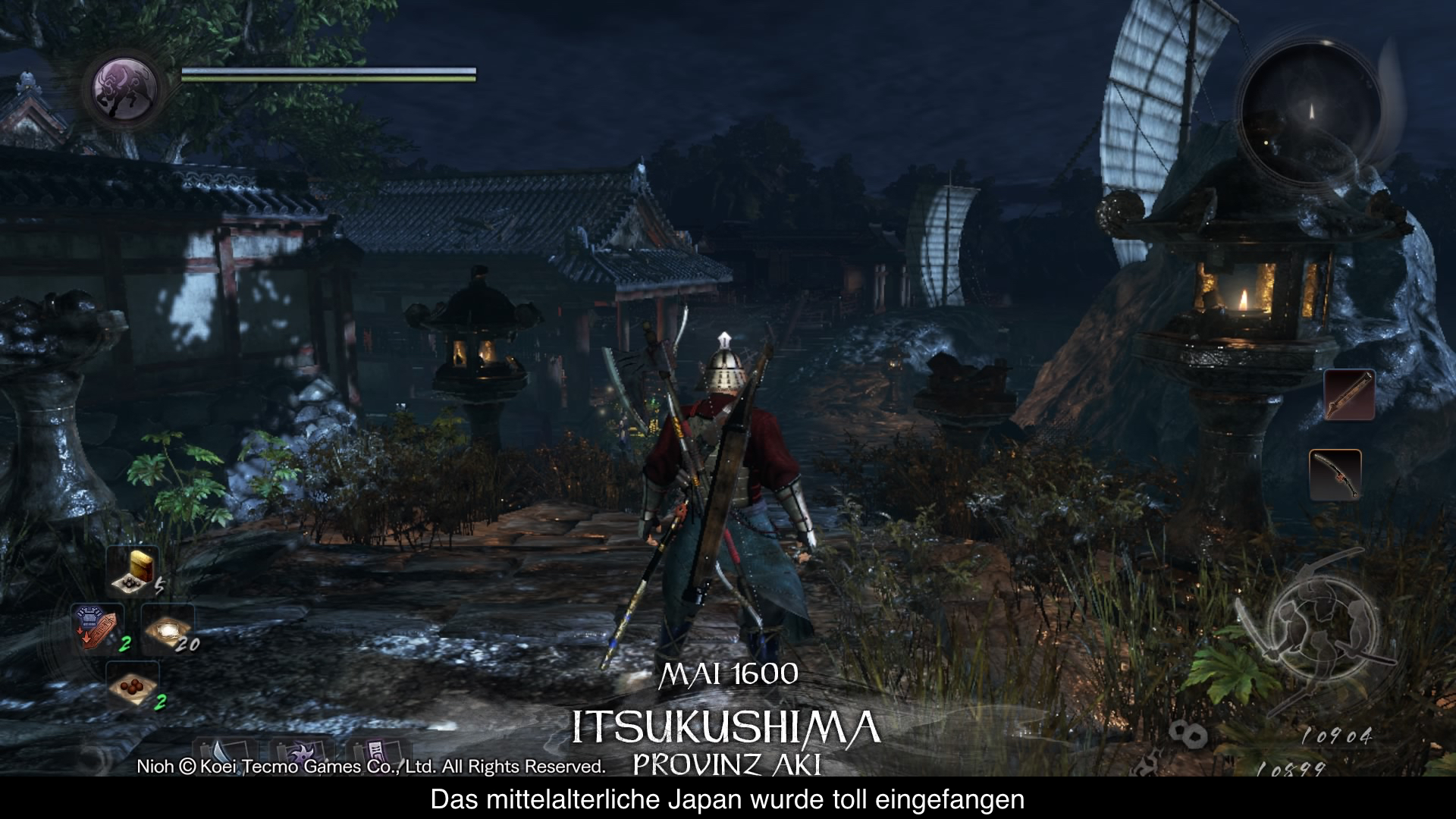 Während Nioh auf diversen Screenshots und Trailern recht ordentlich ausschaut, ist es im Spiel dann doch leider etwas anders. Ständiges Kantenflimmern, fehlendes Anti-aliasing und unscharfe Texturen trüben etwas den Gesamteindruck. Noch dazu ist im Actionmodus (der für 60fps zuständig ist und dafür die Grafik etwas runterschraubt) die Framerate nicht immer stabil. Hier und da gehen gerne mal ein paar Frames verloren. Es ist zwar zu keinem Punkt nervig oder beeinflusst irgendwie das Gameplay, aber es ist halt da. Der eine kommt damit zurecht, der andere wiederum kann sowas gar nicht leider. Für all diejenigen die auf sowas gar nicht klar kommen, gibt es immerhin den Videomodus (dort ist die Framerate auf 30fps gelockt) und können den Modus in Anspruch nehmen, da es dort keine Framedrops gibt. Aber auf der anderen Seite hat man nur 30fps, was für meinen Geschmack viel zu wenig ist für Nioh. Sobald man sich im Kampf befindet baut man sich einen gewissen Flow auf und dort geht es verdammt schnell zur Sache und da sind 30fps eher hinderlich. Das aber darf ja zum Glück jeder für sich entscheiden, insofern hat man hier die Qual der Wahl. Womit ich aber absolut zufrieden bist, ist der stimmungsvolle Soundtrack. Der Komponist Yugo Kanno (zuvor für Rain auf der PlayStation 3 verantworlich gewesen) bringt hier die Stimmung des Japans von 1600 sehr atmosphärisch rüber. Dazu gehören auch spezielle Themes in den jeweiligen Regionen die man während des Abenteuers besucht und auch Bosse haben ihren eigenen Sound.