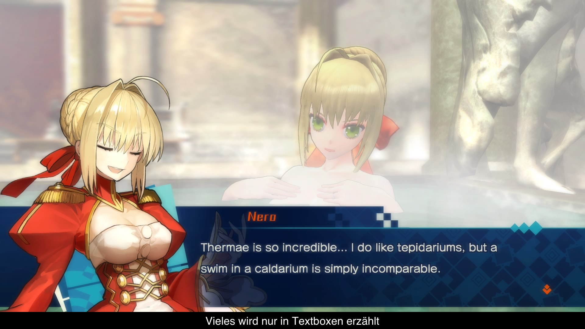 OK, die Handlung ist mehr als verwirrend und bedient sich zahlreicher Klischees. Man wird einfach in die Handlung geworfen und ihr zu folgen ist nicht einfach. Immer wieder fallen Worte wie Moon Cell Automaton, die man nicht gleich zuordnen kann und man beim besten Willen nicht versteht um was es gehen soll. Der Autor war die Fiktion und die Darstellung dieser Welt wichtig und geizte nicht gerade mit Texten. In vollvertonten japanischen Zwischensequenzen wird die Handlung weitererzählt. Diese Szenen können schon gut 10 bis 15 Minuten dauern. Wer nicht gewillt ist, in die Handlung einzutauchen, kann die Zwischensequenzen auch einfach überspringen. Kenner des Anime „Fate / Stay Night“ werden einige Figuren wieder erkennen, doch haben diese nicht viel mit der Serie gemeinsam. Sie sind mehr oder weniger nur für Fans im Spiel. Vielmehr ist es dieses Spiel die inoffizielle Fortsetzung von „Fate/Extra“, welches 2012 für die PSP erschien.