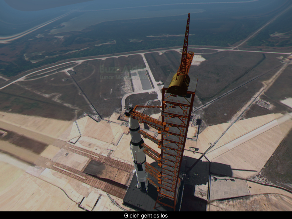 Anschließend werden die wichtigsten Phasen der Mondexpedition in einzelnen Szenen präsentiert. Einige wenige davon sind auf Wunsch interaktiv, aber das meiste davon beschränkt sich auf simple Eingaben. Das bedeutet aber nicht, dass sie sehr einfach sind, denn leider wird nicht so richtig erklärt, was man genau machen soll. Die Landung auf dem Mond habe ich so nicht hinbekommen, weil die Instruktionen zu vage sind, aber da das auch nicht wirklich spaßig ist, hatte ich auch gar keine Lust, es nochmal zu versuchen. Zum Glück kann man jederzeit die Interaktionsmöglichkeiten aus- oder einschalten. Besser war da schon der Spaziergang auf der Oberfläche, wo man ein kleines Areal durchwandern oder – für diejenigen, die das in VR besser vertragen - auch per Teleportation durchqueren kann. Dort kann man sich zu ein paar der Aufbauten auch ein wenig Hintergrundwissen durchlesen oder anhören.