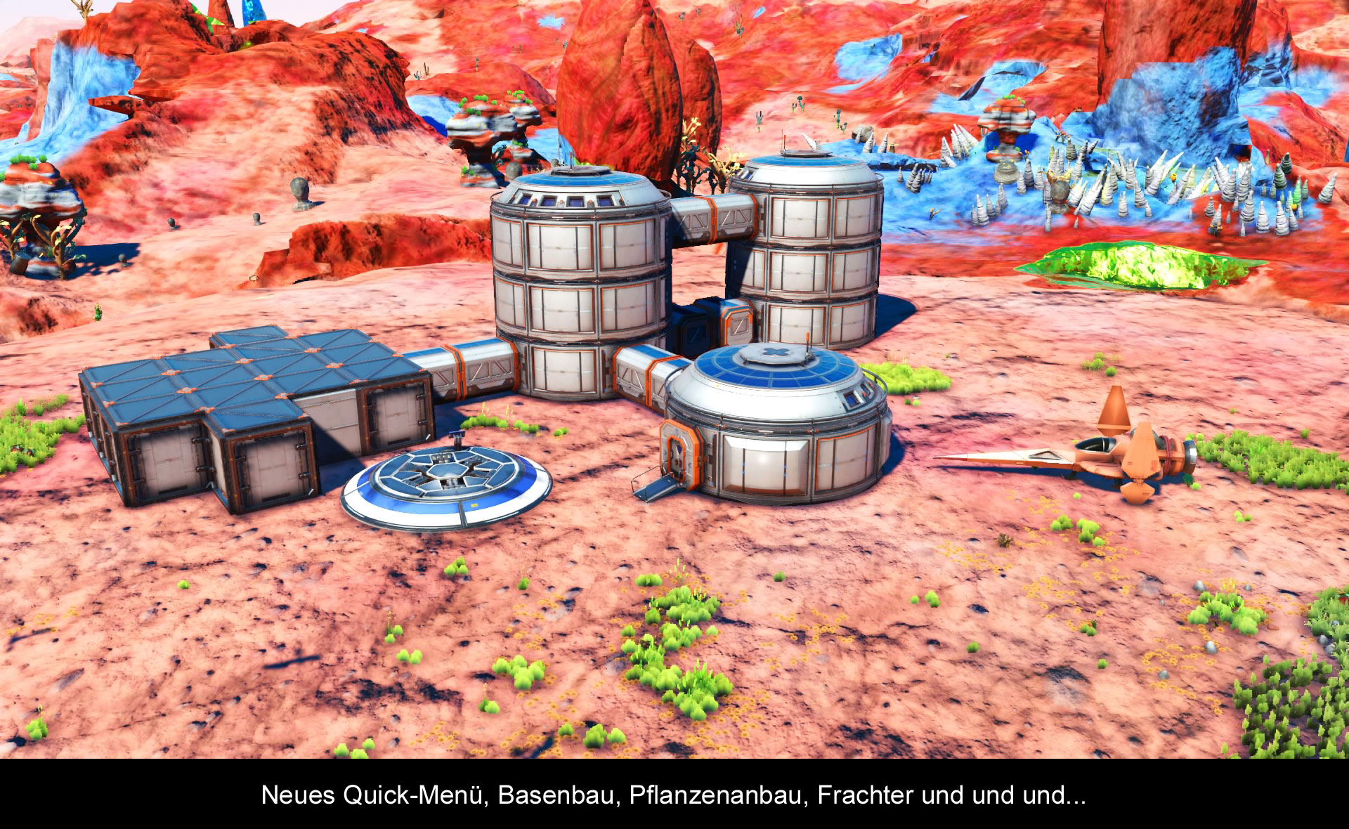 Vorweg, das eigentliche Kerngameplay wurde nicht geändert. Immer noch ist euer täglich Brot das Scannen von Planeten und der Rohstoff Abbau. Aus diesem Zyklus wird das Spiel nie entkommen, bleiben nur die beiden Hauptkritik Punkte von .ram und crack-king, dass das verkorkste Inventar System und die fehlende Motivation. Ersteres wurde vorbildlich gelöst. Die Updates brachten den notwendigen Stauraum um den Inventar für die wichtigsten Dinge freizuspielen. Dass mit der Motivation ist eine andere Sache. Eine grundlegende Handlung gibt es noch immer nicht. Man ist ein leerer Avatar, der sich durch das Universum bewegt. Hello Games hat uns Spieler nur mehr Spielzeug für diese Reise zur Verfügung gestellt. Der Basisbau macht tatsächlich Spaß und man kann sich gestalterisch verwirklichen. Auch die Fahrzeuge Sorgen für etwas Abwechslung bei der Planeten Erkundung. Doch am Ende des Tages ist man wieder im Grindzyklus für Materialen gefangen, aber irgendwie ist dies nicht mehr so frustrierend. Vielleicht liegt es daran, dass man für erfüllte Aufgaben der Angestellten entlohnt wird oder das Lagersystem. Will man was Upgraden sind Materialen schon oft im Lager, da man es nebenbei von anderen Erkundungen mitgenommen hat. Einzig die ewige Suche nach Treibstoff und Energie bleibt mühsam. Großes Lob gebührt für die Grafischen Verbesserungen. Eine deutliche Steigerung gegenüber Version 1.0, zudem ist die Pro Unterstützung vorbildlich. Der Preis wurde mittlerweile auch angepasst, statt happigen 60€ kostet das Spiel nur mehr faire 40€. Mehr hätte dieses Spiel eigentlich nie kosten dürfen. Im Grunde wurden nur zwei große Designschnitzer behoben. Das Spiel ist noch weit von der damaligen Vision entfernt. Doch die Updates konnten mich von einem längeren Besuch überzeugen. Das Universum wirkt nun irgendwie lebendiger. Auf den Planeten tummeln sich mehr Tiere, im Weltraum mehr Frachter und in der Raumstation sitzen mehr als ein Außerirdischer. Man fühlt sich nicht mehr so verloren. Klar, der Einstieg ins Spiel ist immer noch müßig, doch kommt man nun wesentlich schneller voran. Ich werde dem Spiel noch treu bleiben, bis ich einen Frachter mein eigennenne, aber wohin soll es danach gehen? Hello Games wird sich erst wieder der Öffentlichkeit zeigen, wenn man annähernd das Versprochene halten kann. Der Weg ist noch lang, aber der Support ist vorbildlich. Vielleicht überrascht das nächste Update mit Raumschiffbau, der Modulare Aufbau gibt Hoffnung. Die Portale des Trailers sind eigentlich bereits möglich, siehe Teleport Raumstation zu Basis, bleiben nur mehr die Sandwürmer!