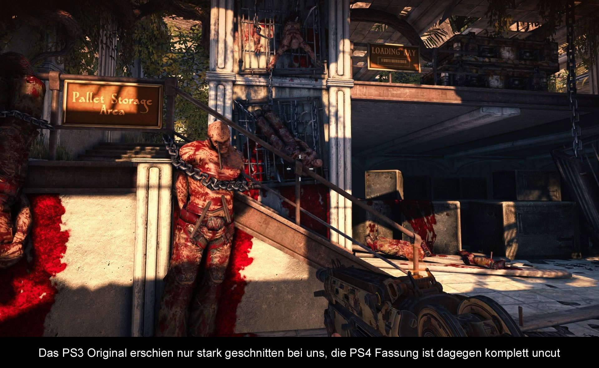 Als ich nämlich hörte, dass das Remaster zum Preis von 50€ angeboten wird, habe ich zunächst eine umfangreiche Portierung auf die Unreal Engine 4 erwartet, und zwar komplett mit neuen Effekten und vielen neuen Inhalten. Schnell zog jedoch Ernüchterung ein, als ich feststellte, dass dies gar nicht der Fall war. Zwar ist Bulletstorm trotz seines Alters kein hässliches Spiel, aber angesichts des hohen Preises, hätte ich mir doch etwas mehr von diesem Remaster erhofft. Immerhin läuft es mit stabilen 60fps, was vor allem dem rasanten Gameplay zugutekommt. Und Besitzer einer PS4 Pro und eines passenden UltraHD-Fernsehers dürften sich zudem auf ein Spielerlebnis in 4K freuen. Was das Art-Design angeht, bewegt sich Bulletstorm zwischen Himmel und Hölle. Während die Umgebungen meist absolut fantastisch aussehen – vor allem wenn es zu großen Setpieces kommt – sehen die Hauptcharaktere immer noch wie lieblose Fleischklöpse aus, was schon damals ein Markenzeichen von Spielen der Unreal Engine 3 war. Ganz klar ein Design, mit dem ich mich niemals anfreunden werde. Nichts zu meckern gibt es hingegen beim Sound, der neben guten Synchronsprechern auch einen epischen Orchester-Soundtrack umfasst, dessen musikalische Qualität mich sehr überrascht hat.