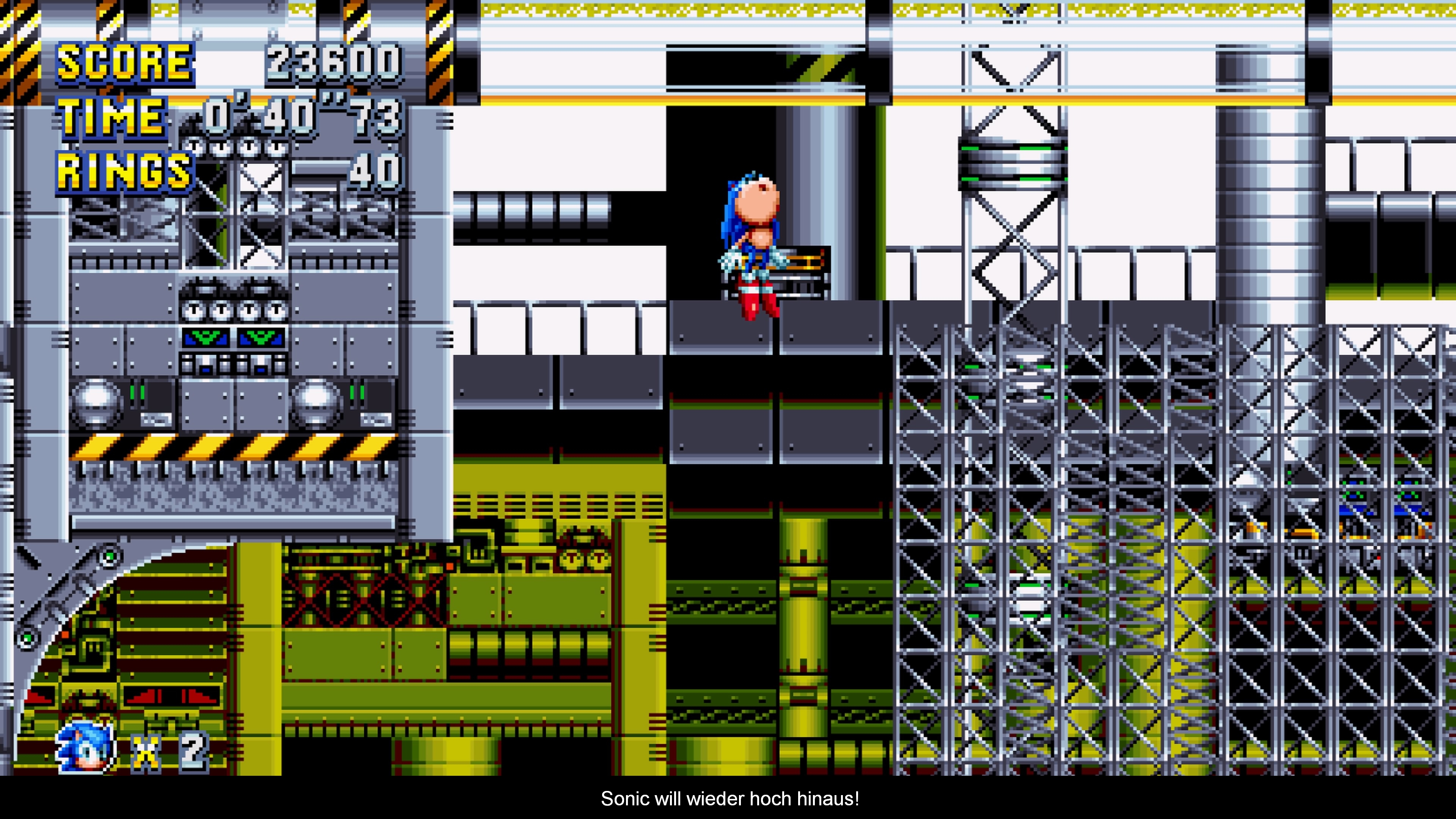 All das wurde in eine technisch hervorragende Hülle gepackt und überzeugt mit butterweichen 60 Bildern in der Sekunde inklusive mehreren Ebenen umfassenden Parallax Scrolling und einigen hübschen Skalierungs- und Rotationseffekten. Wenn es dann auch mal drunter und drüber geht, Sonic seinen Turbo zündet und durch Loopings, Korkenziehern und Tunnel rast, staunt man schon ein wenig, dass alles so unglaublich smooth läuft. Etwas, was man in Sonic 4 nicht hinbekommen hat. Auch die fabelhaften Animationen und geliebten Pausenanimationen wissen zu überzeugen. Hinzu kommt eine musikalische Untermalung, welche sich ebenfalls stark an Sonic 1 bis 3, bzw. Sonic CD orientiert und nicht durch unsägliche Remixe ersetzt wurde. Des Weiteren gibt es die klassischen Soundeffekte auf die Ohren. Auch Super Sonic ist wieder mit am Start, wenn man sich alle Chaos Emeralds gekrallt hat. Wer es noch mehr Retro möchte, kann zudem einen Scanline Effekt über das Bild legen und sich an der verwaschenen Röhren TV Optik ergötzen. Allerdings geht dies schon mächtig auf die Augen.
