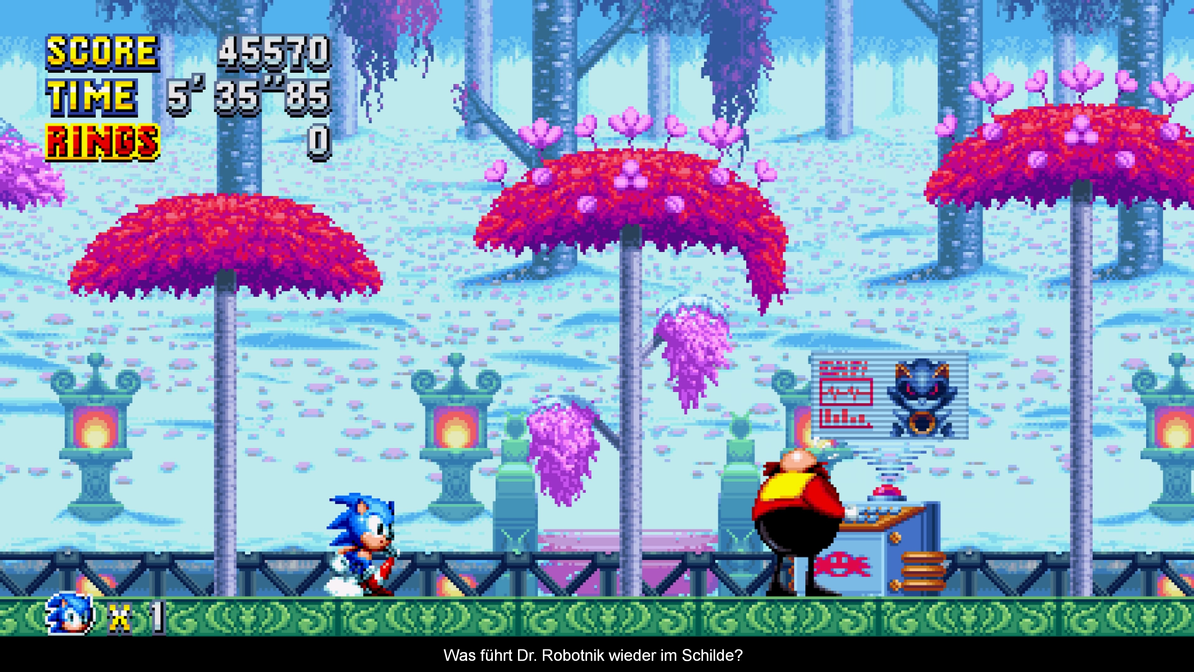 Was gibt es sonst noch? Neben den zwölf Level á zwei Akten umfassenden Hauptspiel kann man noch im Splitscreen gegen einen Kumpel auf der Couch antreten (es gibt keinen Online oder CPU Mode) oder im Time Attack mit seinen Spitzenzeiten in Online Bestenlisten prahlen. Unter Extras gibt es dann noch die Gelegenheit die Sonic 3 Bonus Stage Bluesphere separat zu spielen oder gegen die CPU oder einen Kumpel eine Party "Dr. Robotniks Mean Bean Machine" zu zocken. Beides muss allerdings erst freigeschaltet werden! Des Weiteren kann man sich in den Extras auch den 52 Tracks umfassenden Soundtrack anhören und sich die Credits zu Gemüte führen. Artworks oder ähnliches findet man leider keine. Immerhin gibt es noch einen wunderschön animierten Introfilm, wenn man im Titelscreen kurz verweilt. Gibt es eigentlich auch etwas zu bemängeln? Leute, die damals schon nichts mit Sonic anfangen konnten, wird auch Sonic Mania nicht hinterm Ofen hervorlocken. Spielt man mit Sonic kritisieren viele, dass sich die Level teils von alleine spielen. Klar mag das ab und an der Fall sein, doch es gibt auch genug Abschnitte, wo man selbst mit Sonic seine Verschnaufpausen bekommt. Mag man dies dennoch nicht, steht einem immer noch Knuckles und Tails zur Verfügung, mit denen man völlig anders an die Level herangeht und sich der Kritikpunkt des selbst spielenden Spiels in Luft auflöst. Die Levels wurden sinnvoll erweitert und laden zum Erforschen und erkunden ein. Leider kommt der Coop Modus genauso sinnlos wie vor über 20 Jahren daher, da die Kamera stur auf Sonic verweilt und der Tails Spieler immer das Nachsehen hat. Fans von aktuellen Grafikbrettern werden ebenfalls den starken Retrolook von Sonic Mania bemängeln, obwohl es technisch gesehen nichts zu bemängeln und es genug Effekte gibt, die seinerzeit nicht möglich waren. Dass die coole Sonic 2 Bonus Stage fehlt, erwähnten wir bereits.