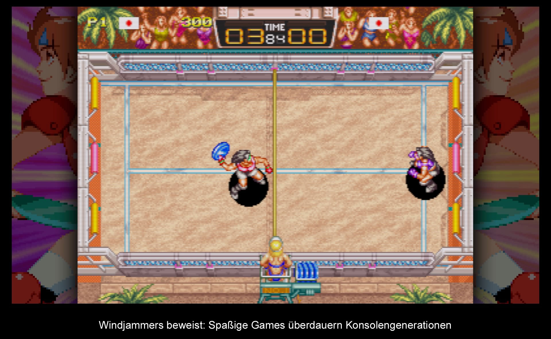 Die Story über die Wiederbelebung von Windjammers ist definitiv eine interessante. Während das Spiel für viele Gamer sicher nicht allzu bekannt ist, gibt es einen speziellen Kreis an Zockern, die sich seit Jahren eine Portierung des Titels für die aktuellen Konsolen gewünscht haben. Dieser Kreis hängt sehr eng mit der Videospiel-Webseite Giantbomb.com zusammen, wo die Original-Version von Windjammers regelmäßig im Stream gespielt wurde. Und mit der Zeit wuchs somit auch das Interesse unter den Fans. Es dauerte jedoch bis zur PlayStation Experience 2016 ehe wir die offizielle Ankündigung von DotEmu bekamen. Und jetzt, wo das Spiel im PSN Store zur Verfügung steht, bleibt nur noch eine Frage zu beantworten: Handelt es sich um eine gute Portierung? Die Antwort gibts in den folgenden Zeilen!