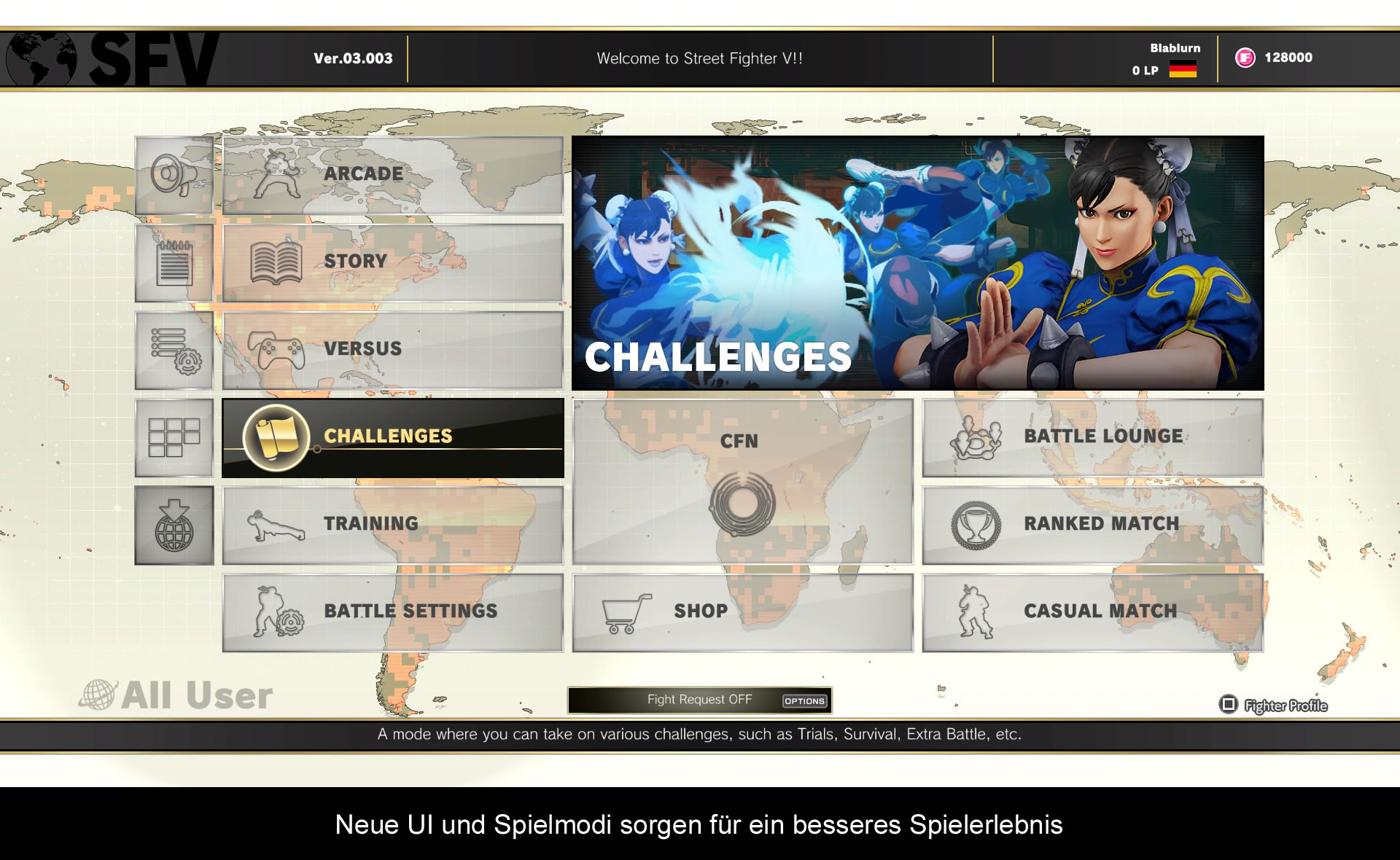 Rein grafisch hat sich seit dem Original-Release von Street Fighter V nicht viel verändert. Aber das ist auch nicht weiter schlimm. Die Arcade Edition sieht nach wie vor beeindruckend aus. Das Gameplay ist flüssig und absolut präzise. Hinzu kommen viele unterschiedliche Charaktere, die allesamt mit Liebe zum Detail entworfen wurden. Wie es schon mein Kollege crack-king in seinem Review vor zwei Jahren beschrieb: „Seien es die Haare oder irgendwelche Mäntel oder andere Dinge. Alles bewegt sich relativ realistisch durch die Luft und nur ganz selten gibt es Clipping-Fehler.“ Und an dieser Sache hat sich wirklich nichts geändert. Lediglich die Hintergrund-Locations lassen hier und da ihr Alter erkennen. Und auch die Ladezeiten könnten für meinen Geschmack etwas kürzer sein. Ein großes Lob verdient auch die überarbeitete UI, die inzwischen deutlich moderner wirkt als noch bei der Version 1.0. Und auch der Sound, der sowohl die Synchronstimmen der einzelnen Kämpfer umfasst als auch die hervorragende Hintergrundmusik, ist über alle Zweifel erhaben.