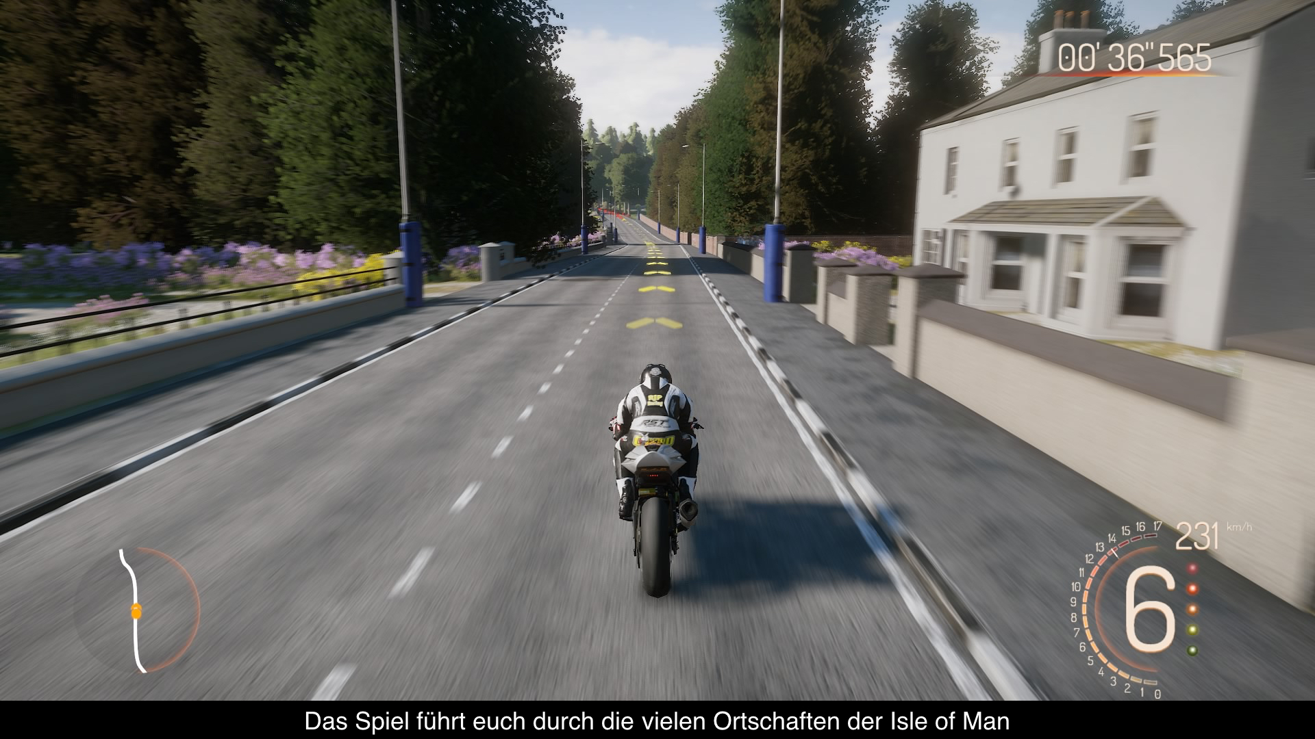 Wie man am Namen des Spiels erkennen kann, steht das berühmte Tourist Trophy Rennen auf der irischen Insel Isle of Man im Mittelpunkt des Geschehens. Dabei handelt es sich um einen Wettbewerb auf einem knapp 60 km langen Kurs, der seit 1907 ausgetragen wird und bis heute 255 Menschen das Leben gekostet hat. Neben der kompletten Isle of Man Strecke bietet das Spiel aber auch noch über 5 erfundene Kurse, die zwar Design-technisch allesamt von derselben Insel stammen könnten, aber dennoch mit einigen Merkmalen ausgestattet wurden, um sich voneinander zu unterscheiden. Während eine Strecke beispielsweise durch einen engen Hafenkomplex führt, rast man auf den anderen Kursen durch Städte oder karge Berglandschaften. Den Höhepunkt stellt jedoch die über 40km lange Isle of Man Strecke dar, die sich nicht nur durch verschiedene Vegetationen auszeichnet, sondern auch durch beeindruckend lange und schnelle Geraden sowie teuflisch schwere Haarnadelkurven. Eine Herausforderung für jeden virtuellen Raser, dessen volle Umrundung locker um die 20 Minuten dauert.