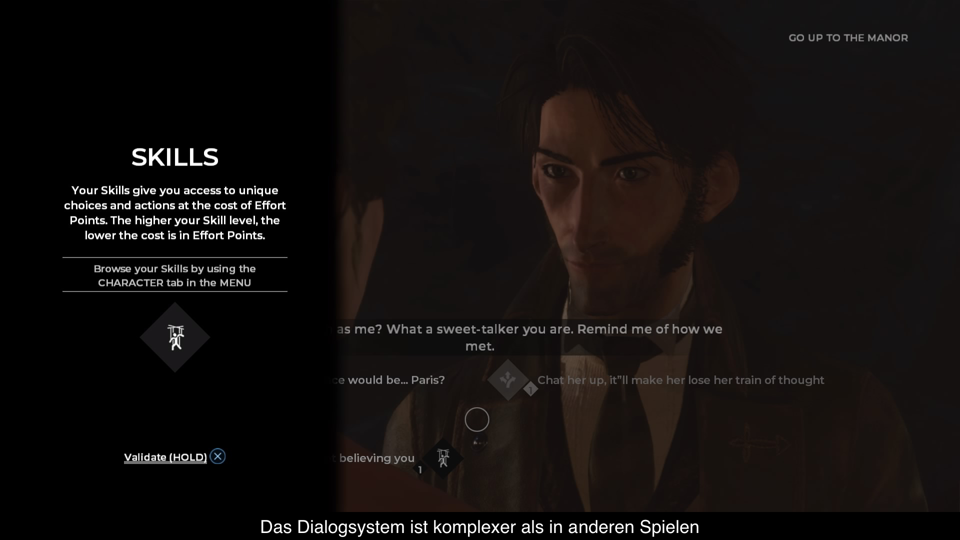 Doch so interessant das System auch ist, am Ende fällt alles mit der Qualität der Story. Und ich muss ich zugeben, dass mich die Verschwörungsgeschichte rund um die Familie de Riche nur bedingt überzeugen konnte. Dies liegt unter anderem daran, dass es eine gewisse Zeit dauert bis die Geschichte an Spannung gewinnt. Und auch der Hauptcharakter des Spiels trägt nicht unbedingt viel zur Spannung hinzu, da das ständige Gelaber über seine Mutter sehr schnell alt wird. Darüber hinaus hilft es auch nicht, dass die Synchronstimme von Louis die Zeilen ohne große Emotionen von sich gibt. Es wird viel zu selten Spannung aufgebaut. Doch gegen Ende offenbarten sich nicht nur mehr Motive, sondern auch die Gefühle und Emotionen der anderen Gäste auf dem Anwesen von Lord Mortimer, was der Geschichte auf jeden Fall entgegenkam. Leider endet die erste Episode relativ abrupt und schnell. Da es aber wie schon eingangs erwähnt zahlreiche Klassen und Story-Wege zu erkunden gibt, finde ich diese relativ kurze Spieldauer gar nicht mal so schlecht. Abgesehen von den Dialogen, die man mit seinen Fähigkeiten beeinflussen kann, gibt es in Sachen Gameplay jedoch nicht viel Abwechslung. Man läuft viel herum, sucht hier und da eine Gegenstände, um die Story voranzutreiben, und löst gelegentlich auch mal ein oder zwei Rätsel – Nichts, was man nicht schon in anderen Adventures gesehen hat.