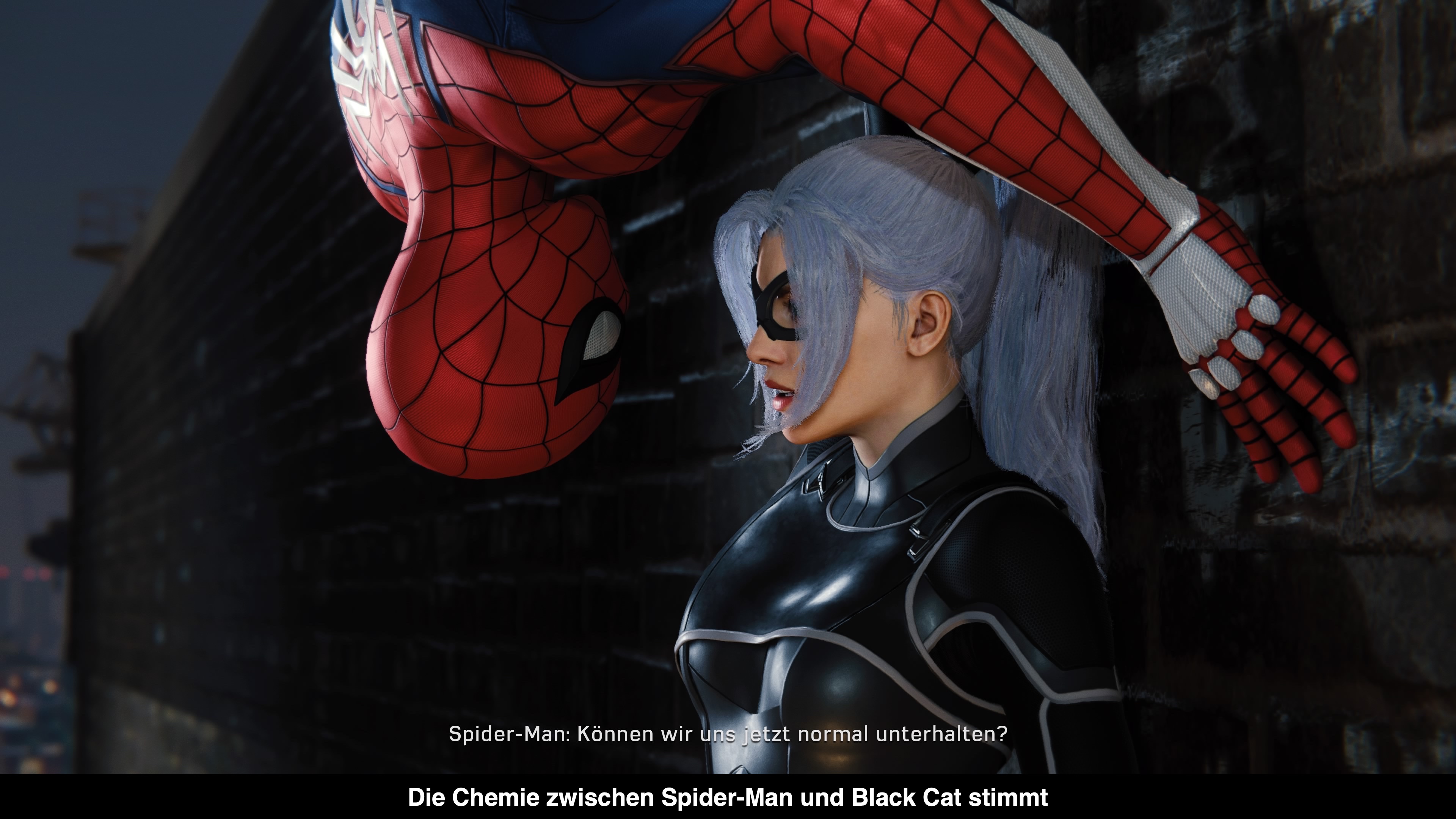 Im Hauptspiel von Marvel's Spider-Man wurde Black Cat bereits angeteasert und nun ist sie tatsächlich in der Stadt. Während die Hammerhead Bande versucht ein Gemälde aus dem Museum zu stehlen, trefft ihr erstmals auf Black Cat, die ebenfalls hinter dem Gemälde her ist. Doch statt das Gemälde zu stehlen, zerstört sie es um an einen USB-Stick darin zu kommen. Wie schon so oft zuvor kann Black Cat entwischen und Spider-Man ist verwirrt. Was führt Black Cat im Schilde und was hat dazu geführt das sie sich mit den Hammerhead und anderen Banden anlegt? Manche der Fragen wird der DLC beantworten, denn die Geschichte wird sich über alle drei DLCs erstrecken. Dafür funktioniert das Zusammenspiel zwischen Black Cat und Spider-Man umso besser und es macht Spaß zuzusehen. Black Cat verdreht Spider-Man buchstäblich den Kopf und das sorgt für einige lustige Dialoge.