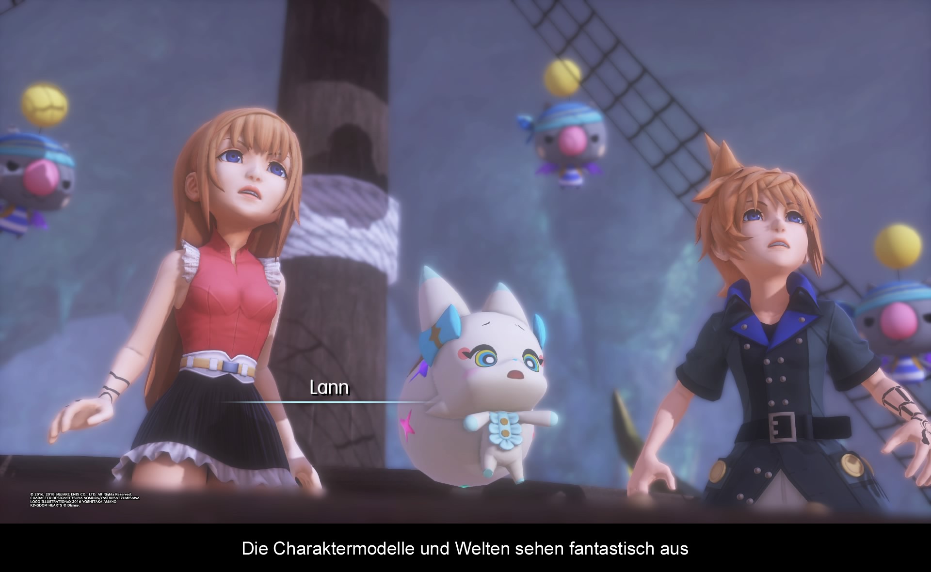 Das Spiel beginnt mit der Vorstellung der beiden Geschwister Lann and Reynn, die innerhalb der ersten 15 Minuten erfahren, dass sie gar keineswegs nur normale Teenager sind. Stattdessen erfahren sie von der mysteriösen Enna Kros, dass sie sogenannte „Mirage Keeper“ aus der Welt Grymoire sind. Völlig überrumpelt von dieser Tatsache, aber auch mit einem Hauch von „Ja, die Geschichte scheint nicht ganz abwegig zu sein“, begeben sich Lann und Reyn schließlich nach Grymoire auf, um ihrem frühen Leben auf die Spur zu gehen. Und es dauert nicht lange, ehe sie erfahren, dass vor allem ihr Dasein als Mirage Keeper ein wichtiger Bestandteil ihres früheren Leben war. Mirages sind kleine Wesen (ähnlich wie Pokemon), die sobald man sie kontrolliert, starke Partner im Kampf sein können. Und laut den Geschichten, die man in der Welt von Grymoire hört, gehörten die Geschwister mit zu den Stärksten ihrer Art. So dreht sich euer Abenteuer schließlich nicht nur darum, mehr über das Land und seine Verbindung zu Lann und Reyn zu erfahren, sondern auch ihr Können als Mirage Keepers wiederzuerwecken. Umgarnt wird diese Geschichte durch einen Konflikt im Lande Grymoire, der durch die Bahamut-Armee angezettelt wurde. Die Story von World of Final Fantasy Maxima ist kein Highlight, und besitzt auch kaum etwas, was man nicht schon in anderen J-RPGs gesehen hat, aber einige überraschende Wendungen hier und da und ein häufiges Wiedersehen mit altbekannten Final Fantasy Legenden, wie Yuna oder Squall sorgt dafür, dass man als Fan der Serie durchaus zufriedengestellt wird.