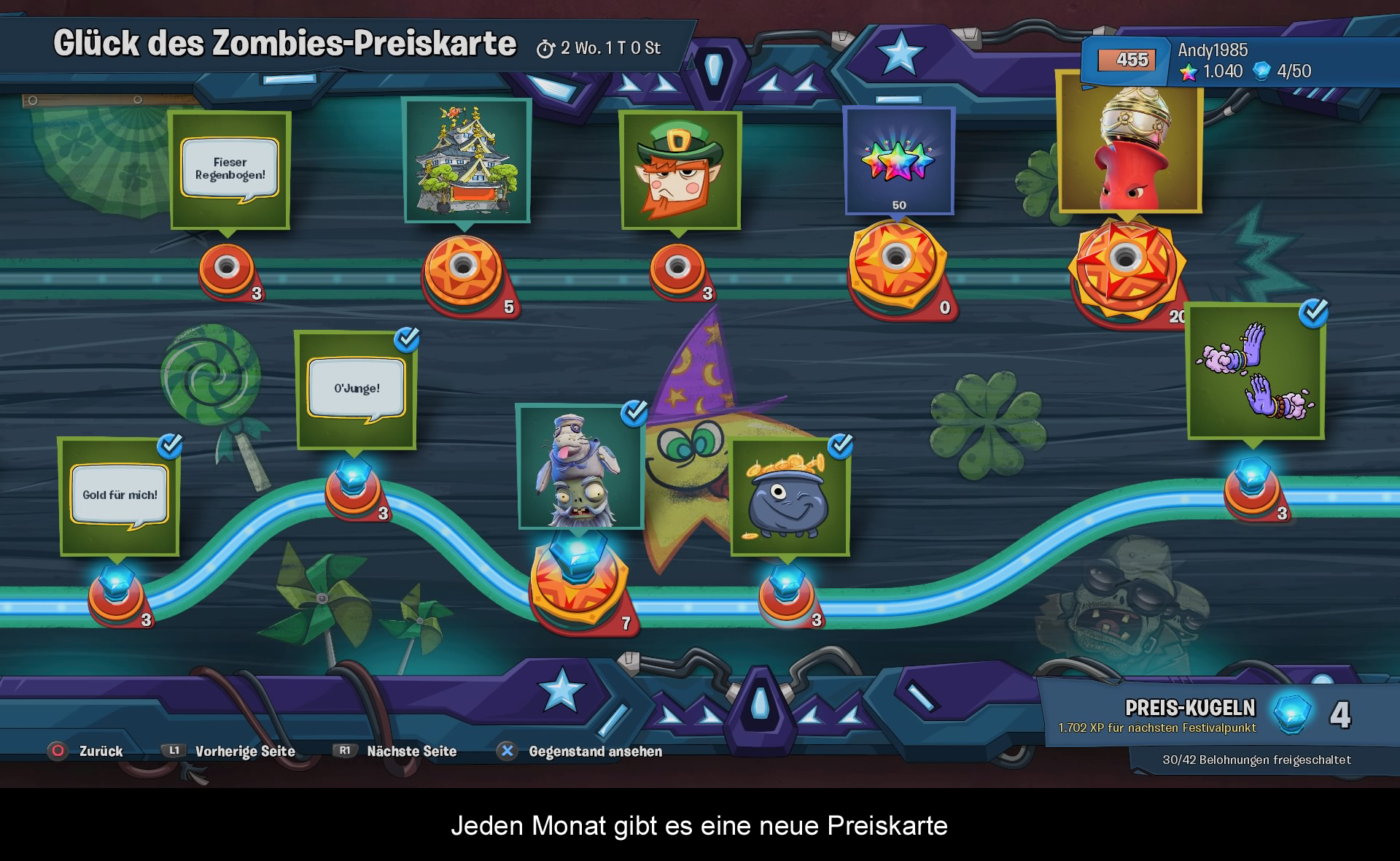 Bevor wir in den Multiplayer-Modus springen, möchte ich jedem Spieler den Singleplayer-Modus ans Herz legen. Die Vorgänger wurden bei diesem Punkt scharf kritisiert und das Team hat sich das auch zu Herzen genommen. Die Tage wo es nur einen zentralen Hub gegeben hat, sind vorbei, denn aufbauend auf den Online Mehrspieler-Karten wurde die Zentrale auf drei unterschiedliche Regionen erweitert, welche man beliebig erkunden darf. In diesen Bereichen findet man zahlreiche Quests und Herausforderungen. Diese reichen von Offline Team-Deathmach, zu komplizierten Jump ‘n Run Einlagen und Enden mit einem umfangreichen Boss-Kampf. Gut, die Herausforderungen sind teilweise nicht schwer und die Dialoge der Quests sind auch nicht für jedermann gemacht. Doch das Team hat sehr viel Zeit investiert, um den wahren Plants vs. Zombies-Fans gerecht zu werden. Zudem bietet man hier die Möglichkeit, abseits des Onlinespieles schnell Münzen und Erfahrung zu verdienen. Wer hier dennoch eine Herausforderung sucht, darf sich auf Gnom-Jagd begeben - die wahren Feinde der Pflanzen und Zombies. Diese Ritter sollten den einen oder anderen länger beschäftigen. Wer die Jagden nicht meistern kann, holt sich einfach ein paar Freunde dazu, denn man kann diesen Modus Online wie auch Offline im Coop spielen. Am Ende des Tages bleibt dieser Modus aber nur eine nette Dreingabe, denn das Kernstück ist und bleibt der Online-Modus.
