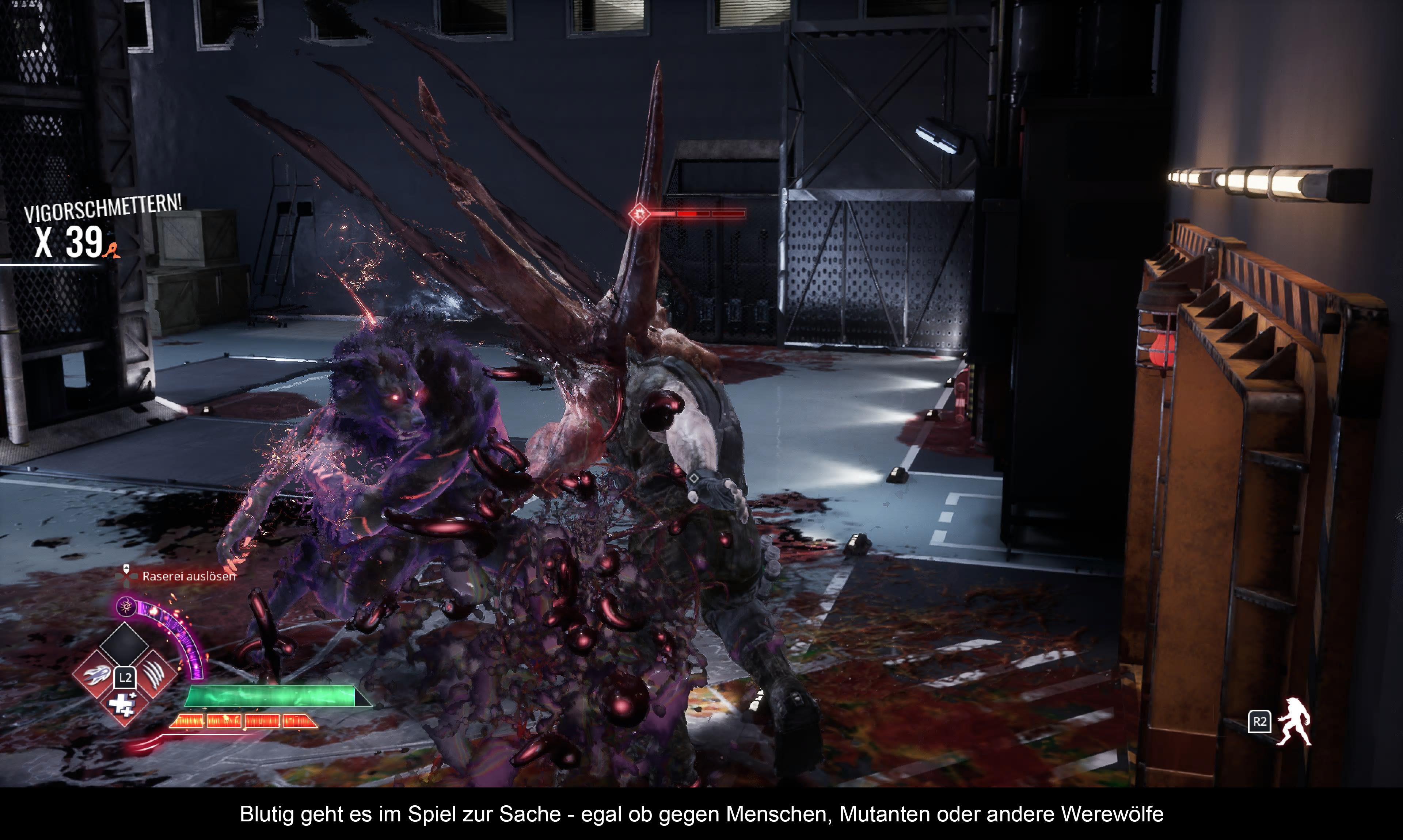 Cahal ist ein Werwolf, deshalb man den Protagonisten in seiner menschlichen Form (Homid), aber auch als Wolf (Lupus) und in den zahlreichen Kämpfen natürlich als ultimative Kampfbestie (Crinos). Bei letzterem stehen Cahal zwei Angriffshaltungen zur Verfügung, die beide jeweils Vor- und Nachteile haben. Da gibt es die schnelle und die behäbige Art und Weise, die man jederzeit per Knopfdruck wechseln kann und auch muss. Denn die Feinde setzten auch Silber ein und das ist, wie jeder weiß, extrem schädlich für die haarigen Freunde der Nacht. Somit springt man gekonnt zu den Schützen, während man den Supersoldaten oder Exo-Mechs am besten mit der Vigor-Haltung entgegentritt. Mit der gewonnenen Erfahrung kann man diverse Special-Moves und andere Vorteile freischalten.