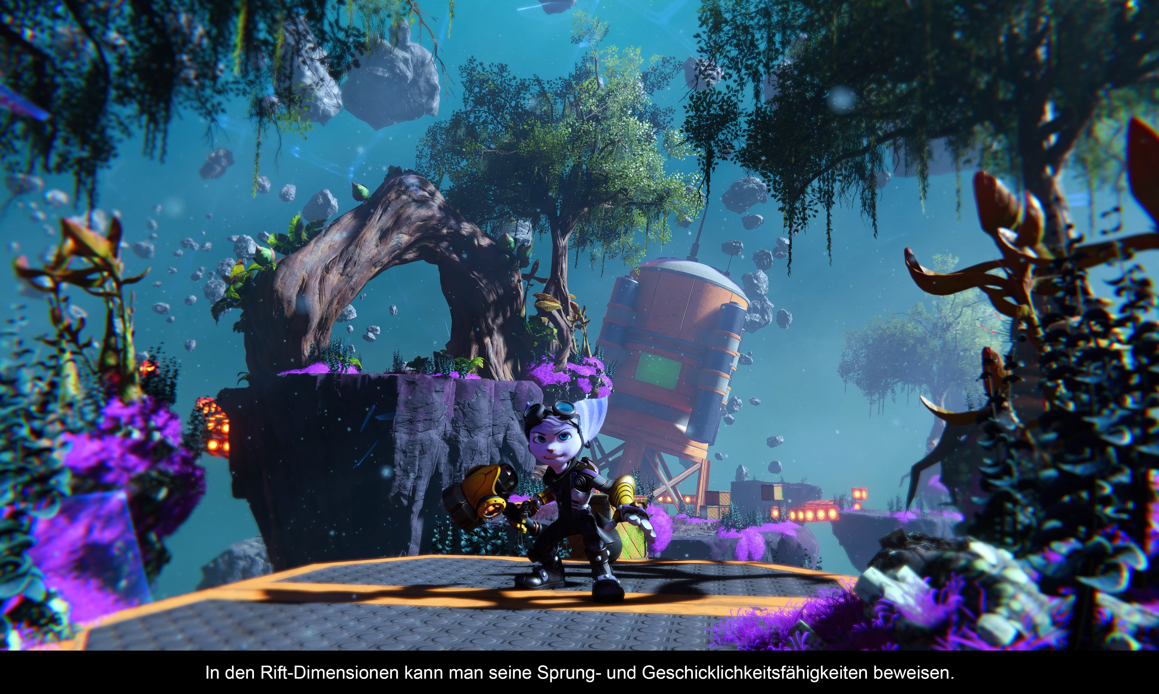 Dafür das Ratchet noch einen prominenten Teil im Titel beansprucht, rückt er als Hauptcharakter deutlich in den Hintergrund. Insomniac Games nimmt sich viel Zeit für die neue Heldin Rivet. Jedoch geht das erstaunlicherweise nicht auf Kosten der beiden Titelhelden. So findet Rivet früh im Spiel Clank, der erst einmal den braven Gefährten mimt und Rivet über ihre Dimension und Geschichte ausfragt. Das ist logisch in die Handlung eingebunden und verleiht auch Clank noch etwas Charaktertiefe. Ratchet hingegen streift wie gewohnt durch die Galaxis, bekommt aber im Laufe der Zeit auch einen ungewöhnlichen Partner zur Seite gestellt. Nebenbei trifft man auch noch auf dimensionale Gegenstücke von diversen Charakteren, was für allerhand Gags sorgt.