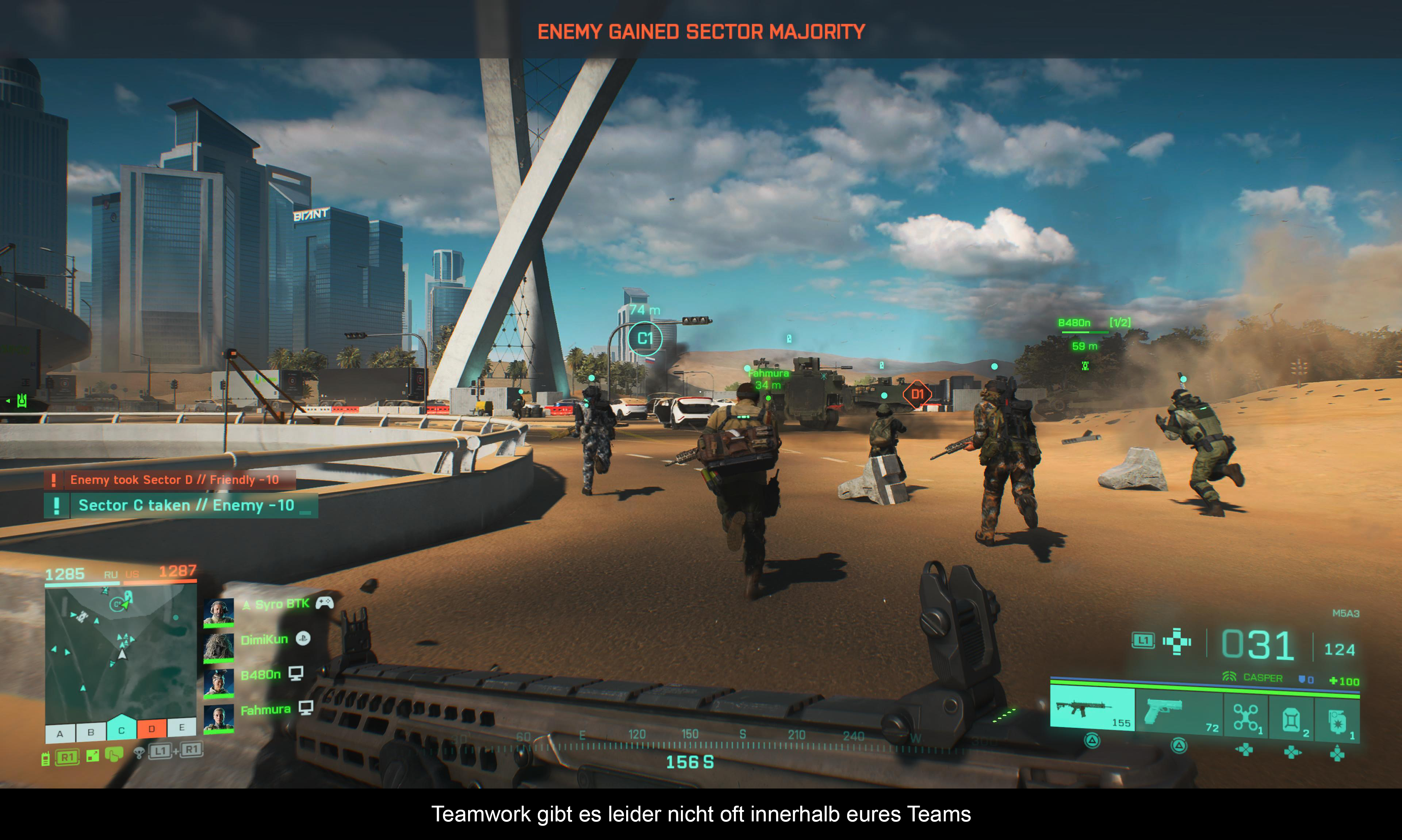 Wie bei vielen anderen Spiele derzeit, handelt es sich auch bei Battlefield 2042 um ein Cross Gen Titel, welches sowohl für PS4 als auch für PS5 veröffentlicht wurde. Dennoch muss ich zugeben, dass die PS5 Variante recht hübsch aussieht und dank (fast immer ruckelfreien) 60 FPS auch ziemlich flüssig läuft. Das Spiel zeigt vor allem seine Stärken, wenn große Gegnermengen aufeinander stoßen, und die Umgebung von Explosionen, Schüssen und mitunter auch gewaltigen Naturkatastrophen erschüttert wird. Diese Momente überzeugen und zeigen, was die Frostbite Engine alles drauf hat. Das Gegenteil sind jedoch die zahlreichen langweiligen Lauf-Passagen über weitläufige Maps, wo nicht viel passiert. Hier kann man zumindest die gute Weitsicht loben, die es einem je nach Standort erlaubt, große Teil der Map überblicken zu können. Außerdem müssen PS5 Zocker auch bei EAs neuestem Next-Gen Titel auf Ray-Tracing verzichten. Dennoch sehen Reflektionen und Texturen größtenteils ordentlich aus. Wo die Geschmäcker am Ende vielleicht etwas auseinander gehen, sind die einzelnen Maps, die aufgrund ihrer Struktur manchmal etwas langweilig und steril daherkommen. Große Metropolen oder kompakte Militärbasen hat man beispielsweise schon in vielen anderen Spielen gesehen, und reißen jetzt auch keinem mehr vom Hocker. Auch fiel mir auf, dass die Umgebung nicht mehr so leicht zerstörbar ist, wie in anderen Teilen. Was den Sound angeht, gibt es so gut wie nichts zu beanstanden. Explosionen und Wettereffekte wirken realistisch. Lediglich die Musik, die ab und zu mal eingespielt wird, ist kaum der Rede wert.