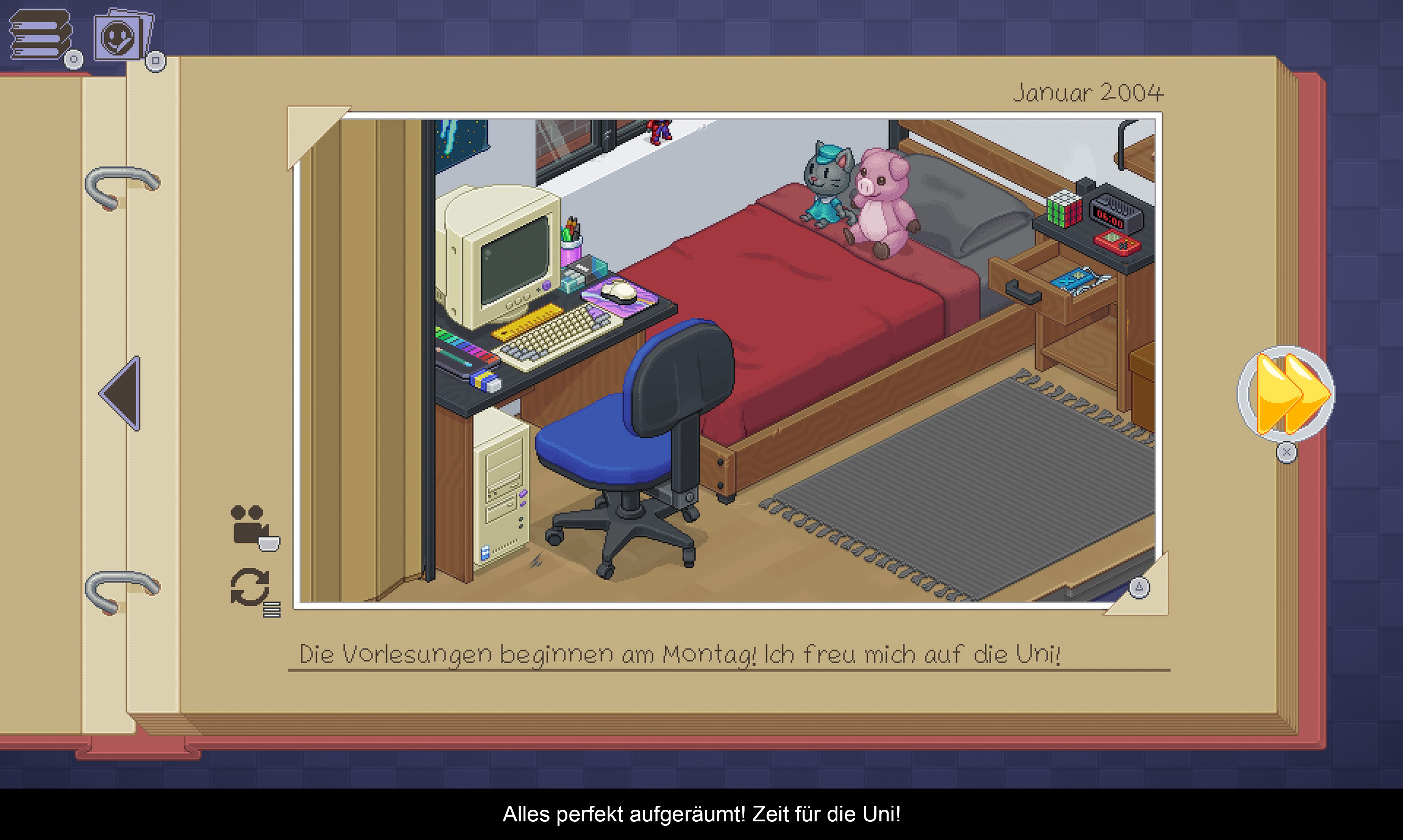 Nebenbei ergibt sich zudem ein faszinierender Querschnitt darüber, wie sich die Technik über die Jahre entwickelt hat. Man beginnt mit einem PC und Röhrenbildschirm und später finden sich ein moderner Laptop und ein Flachbildschirm im Haushalt. Abgerundet wird jeder Level mit einem kurzen, persönlichen Kommentar. Danach geht es in den nächsten Lebensabschnitt und einen weiteren Berg von Kartons, die man Auspackung muss.