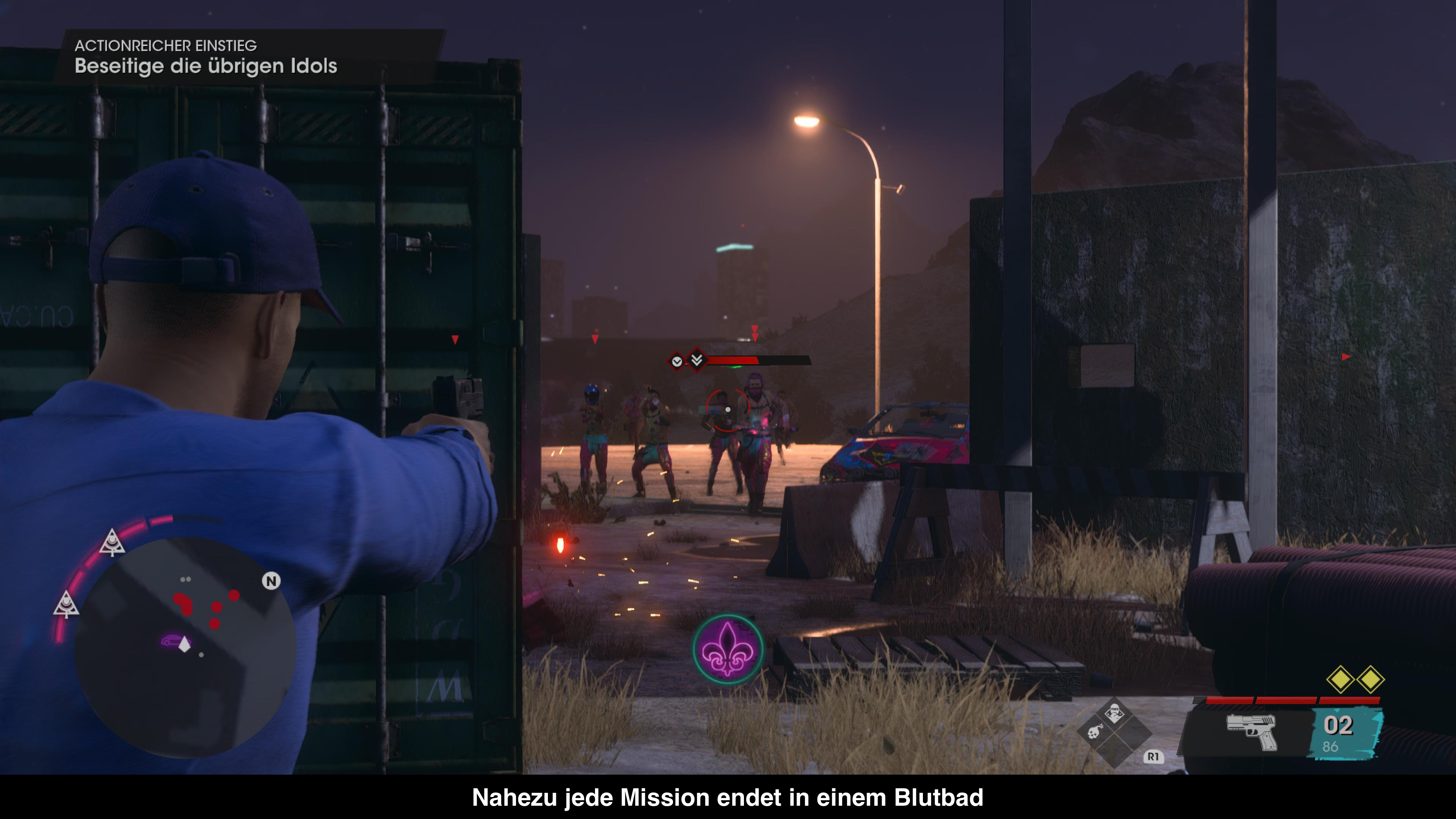 Während die Story rebootet wurde, ist das Gameplay für Open World Fans nichts neues. Ihr wählt über euer Handy die nächste Mission aus und meist laufen die Missionen so ab: Ihr trefft euren Partner, fahrt gemeinsam zu einem bestimmten Punkt und dann wird geballert was das Zeug hält, weil ihr einen Angriff abwehren müsst oder eben selber die gegnerischen Parteien angreift. Leider ist das Gunplay nicht besonders gut. Man muss sich auf das Auto-Aim verlassen um irgendwas zu treffen, aber zum Glück machen es die Gegner einem nicht besonders schwer. Denn zum Teil machen sie mitten im Kampf Selfies, was wohl witzig sein soll. Eure Gesundheit könnt ihr dann nicht über Medipacks oder ähnliches heilen, sondern mit Special-Moves. Dafür ladet ihr einfach eine Leiste durch das Kämpfen auf und lauft dann zu einem Gegner und triggert euren Move. Dann tötet euer Charakter meist auf semi-witzige Weise den Widersacher und so heilt ihr euch.
