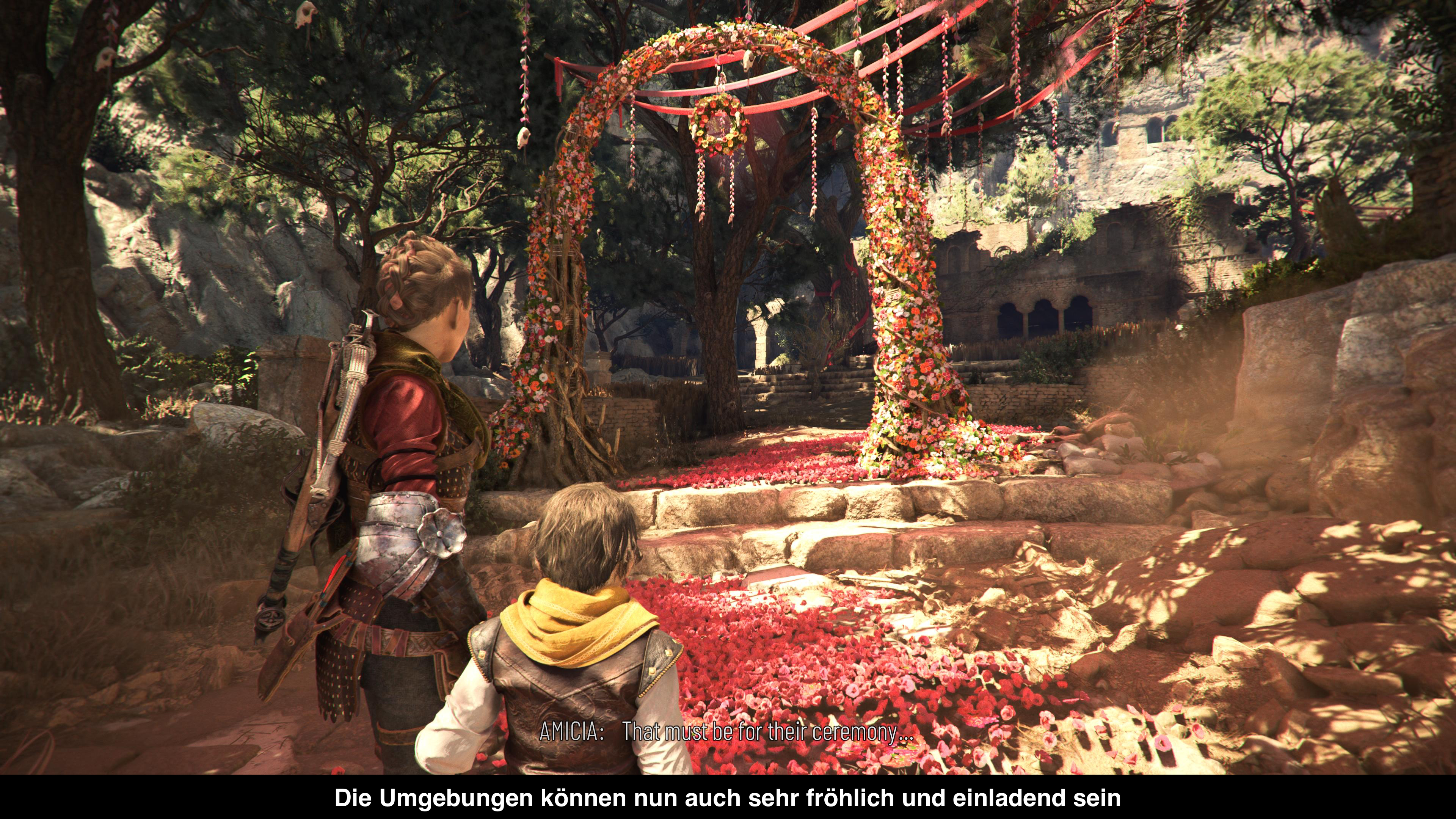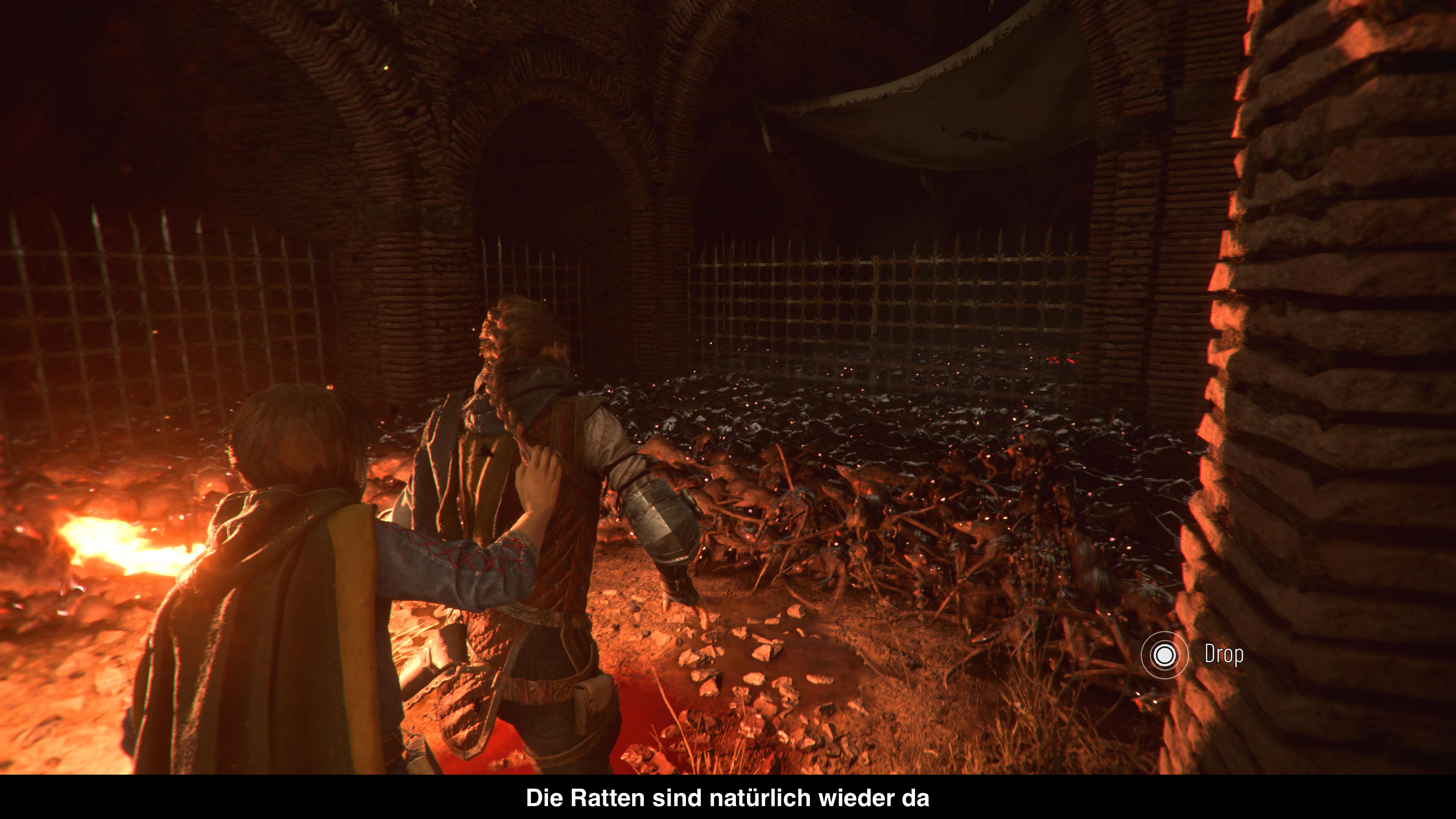 A Plague Tale: Requiem ist einer der seltenen Titel, die nur auf der aktuellen Konsolengeneration erscheinen. Das sieht man im Spiel in erster Linie an noch detaillierten Charaktermodellen und auch an den Umgebungen, die noch mehr Details erhalten. Es gibt auch insgesamt deutlich mehr unterschiedliche Umgebungen als im Vorgänger und es findet auch mehr bei Tageslicht statt, was viele Details noch mal mehr zur Geltung bringt. Ehrlicherweise sieht man aber nicht unbedingt einen gravierenden Generationsunterschied, was wohl auch an dem gut aussehenden Vorgänger liegt. Dieser lief aber auf der PlayStation 5 absolut flüssig, was man vom aktuellen Spiel leider nicht behaupten kann. Es gibt regelmäßig Probleme mit der Bildrate, vor allem wenn es dunkel wird und Feuer im Spiel ist. In Extremsituationen scheint das Spiel sogar mit einstelliger Bildrate zu laufen. Solche Extremsituationen stabilisieren sich zum Glück recht schnell wieder, aber auf Dauer ist das doch sehr nervig. Überraschend ist auch dass das Spiel so viele “Drück dich durch eine Lücke um das weitere Level zu erreichen” Szenen enthält, die dank SSDs eigentlich der Vergangenheit angehören sollten. Selbst vor einigen Ladebildschirmen bleibt man nicht verschont, was man heute kaum noch gewohnt ist.