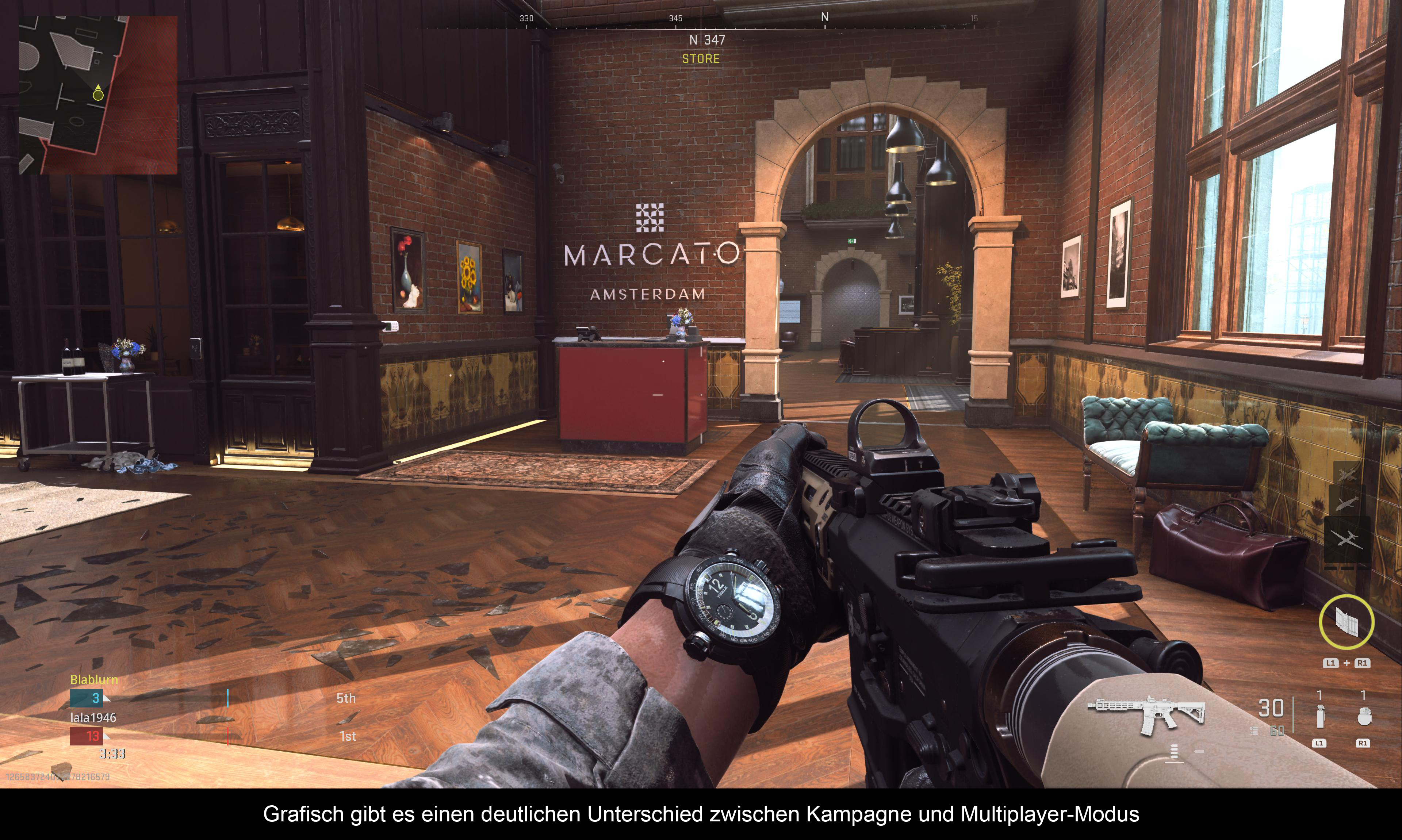 Was die Grafik angeht, zeigt Call of Duty sowohl Höhen als auch Tiefen. Schaut man sich die Kampagne als Einzelprodukt an, muss man zugeben, dass Activision hier keine Kosten und Mühen gescheut hat. So bietet das Spiel eine Vielfalt von Maps und Umgebungen an, die von engen Gängen auf Schiffen bis hin zu weiten Feldern in Spaniens Hinterland reichen, wo vor allem Scharfschützen-Fans ihre wahre Freude haben werden. Was das Gameplay angeht, hat man zwar viele Missionen in ähnlicher Form bereits früher gesehen, aber optisch sah das Spiel nie besser aus. So ist es keine Überraschung, dass vor allem das Amsterdam-Level, welches man zu Beginn der Kampagne besucht, mit seinem enormen Detailreichtum selbst Nicht-Call of Duty-Zocker in den sozialen Medien aufhorchen ließ. Mit atemberaubenden Lichteffekten, bombastischen Explosionen und fantastischen Charakter-Modellen zeigt die Kampagne, wie ein Action-Spiel im Jahr 2022 auszusehen hat. Leider ist es den Entwicklern jedoch nicht gelungen, diese grafische Pracht in den Multiplayer-Modus zu übertragen. Insbesondere die Warzone-Map wirkt recht durchschnittlich mit vielen enttäuschenden Umgebungstexturen. Hier fand ich zum Beispiel, dass die Mehrspieler-Maps des letzten Battlefields deutlich cineastischer wirkten.