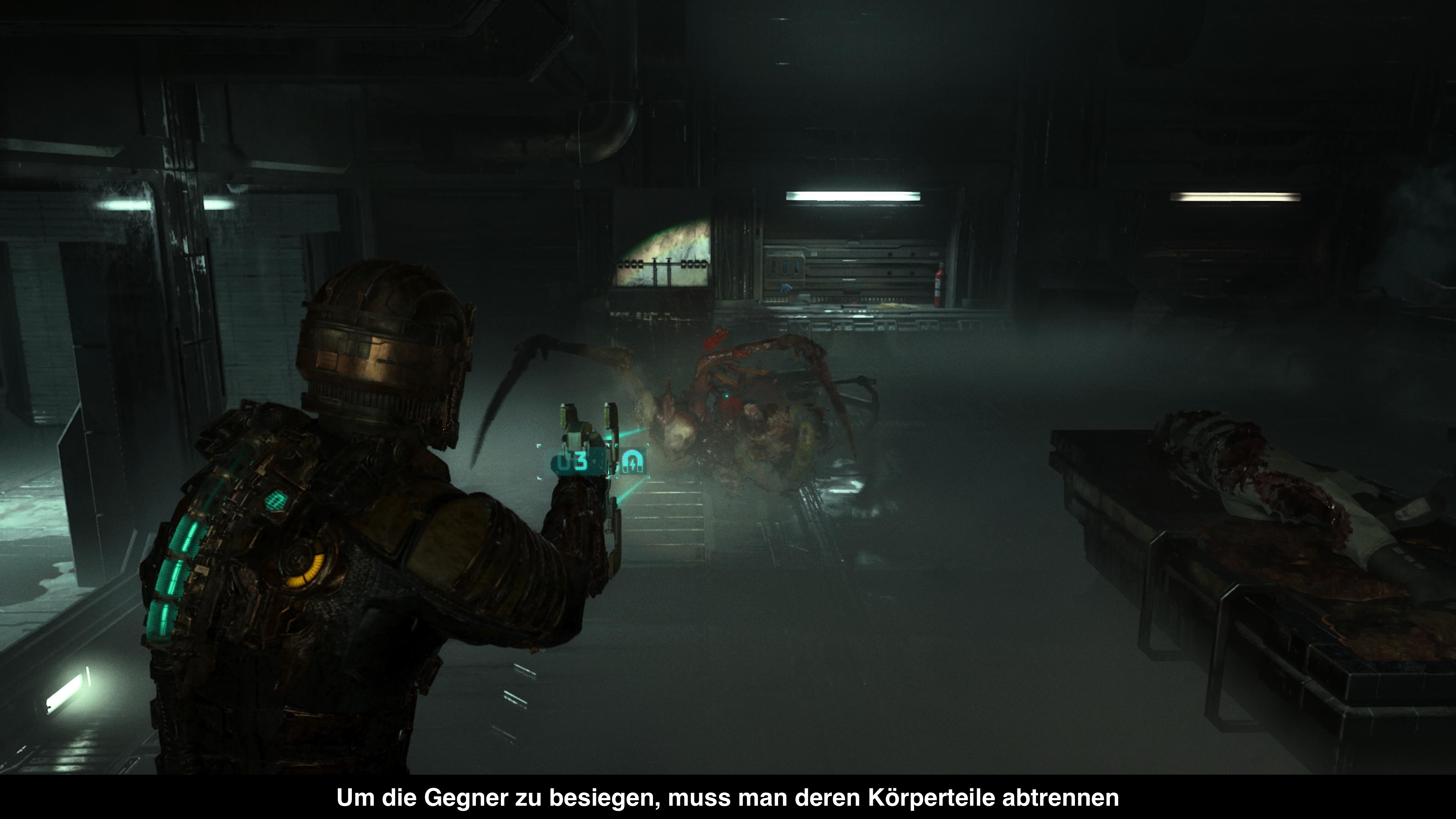Das Kampfsystem im Remake ist im Vergleich zum Vorgänger quasi unverändert geblieben. Dadurch gibt es weiterhin großen Fokus darauf, den Gegnern Gliedmaße abzutrennen, um sie so zu verlangsamen und letztlich auch auszuschalten. Um dies zu schaffen, darf man auf ein großes und kreatives Arsenal an Waffen zurückgreifen, die allesamt auch im Original vorkommen. Für Kenner des Originals muss sich aber keine Langeweile einstellen, denn man hat ein paar Anpassungen vorgenommen. In erster Linie wurde das Schiff umdesignt. So sind manche Wege leicht anders als im Original und gewisse Dinge passieren mal eher, mal später als damals. Insgesamt wirkt das Leveldesign der Ishimura etwas sinniger und man hat nicht das Gefühl, dass gewisse Designentscheidungen nur dank der damals verfügbaren Technologie getroffen werden. Die zweite Änderung betrifft die Szenen in der Schwerelosigkeit. Im Original musste man sich von Wand zu Wand abstoßen, um Hindernissen auszuweichen. Im Remake kann man sich nun völlig frei in der Schwerelosigkeit bewegen, was erstmal positiv klingt. In manchen Sektionen verliert man aber auch leicht den Überblick, weil nicht ganz ersichtlich ist wo nun noch oben oder unten ist.