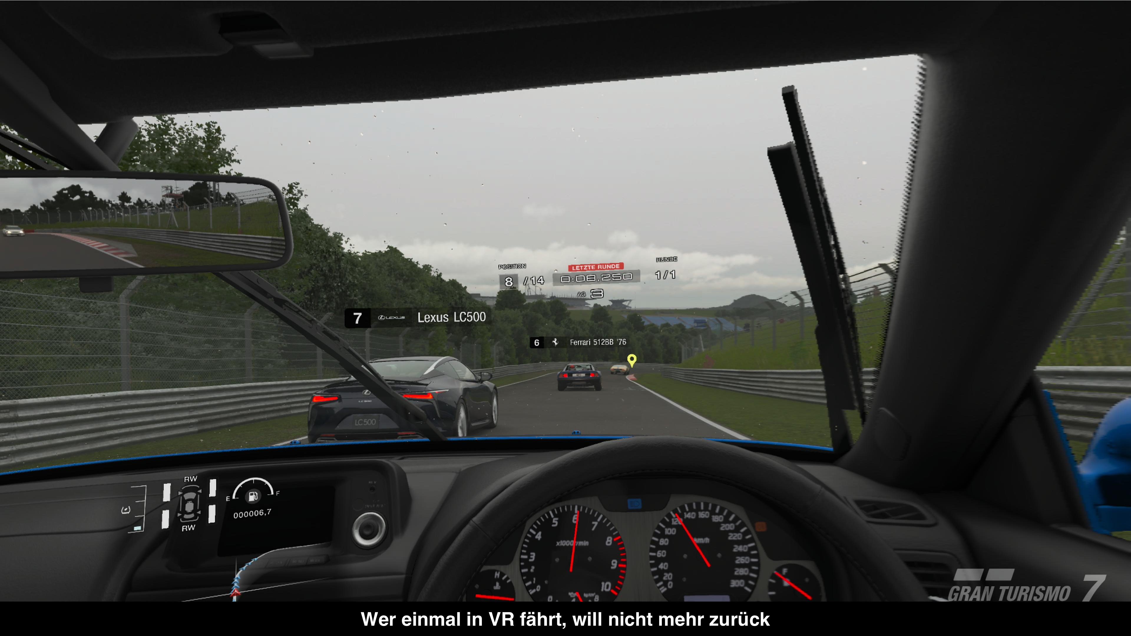Da man quasi das komplette Spiel in der virtuellen Realität spielen kann, stellt sich natürlich die Frage wie viele Abstriche man in Sachen Grafik hinnehmen muss, um all das zu ermöglichen. Immerhin war Gran Turismo Sport mit PlayStation VR nicht nur beschnitten, sondern sah auch deutlich schlechter aus. Überraschenderweise ist die Antwort auf diese Frage ein klares: “Kaum!”. Denn wenn man nicht gerade die beiden Versionen gegeneinander stellt, denkt man, man würde einfach das normale Spiel spielen. Alle Details in den Autos und Strecken sind perfekt erkennbar, die Fahrzeuge verfügen immer noch über die vielen Details und die Beleuchtung ist so gut wie eh und je. Natürlich gibt es ein paar Abstriche bei der Auflösung oder ein paar Details wie Rauch & Co. wurden heruntergedreht, aber alles in allem sieht es dem Original wirklich extrem ähnlich und in Aktion fallen die Kleinigkeiten kaum auf. Alleine einen hochaufgelösten und in 60 Bildern pro Sekunde angezeigten Rückspiegel zu sehen, sorgt für viel Freude.