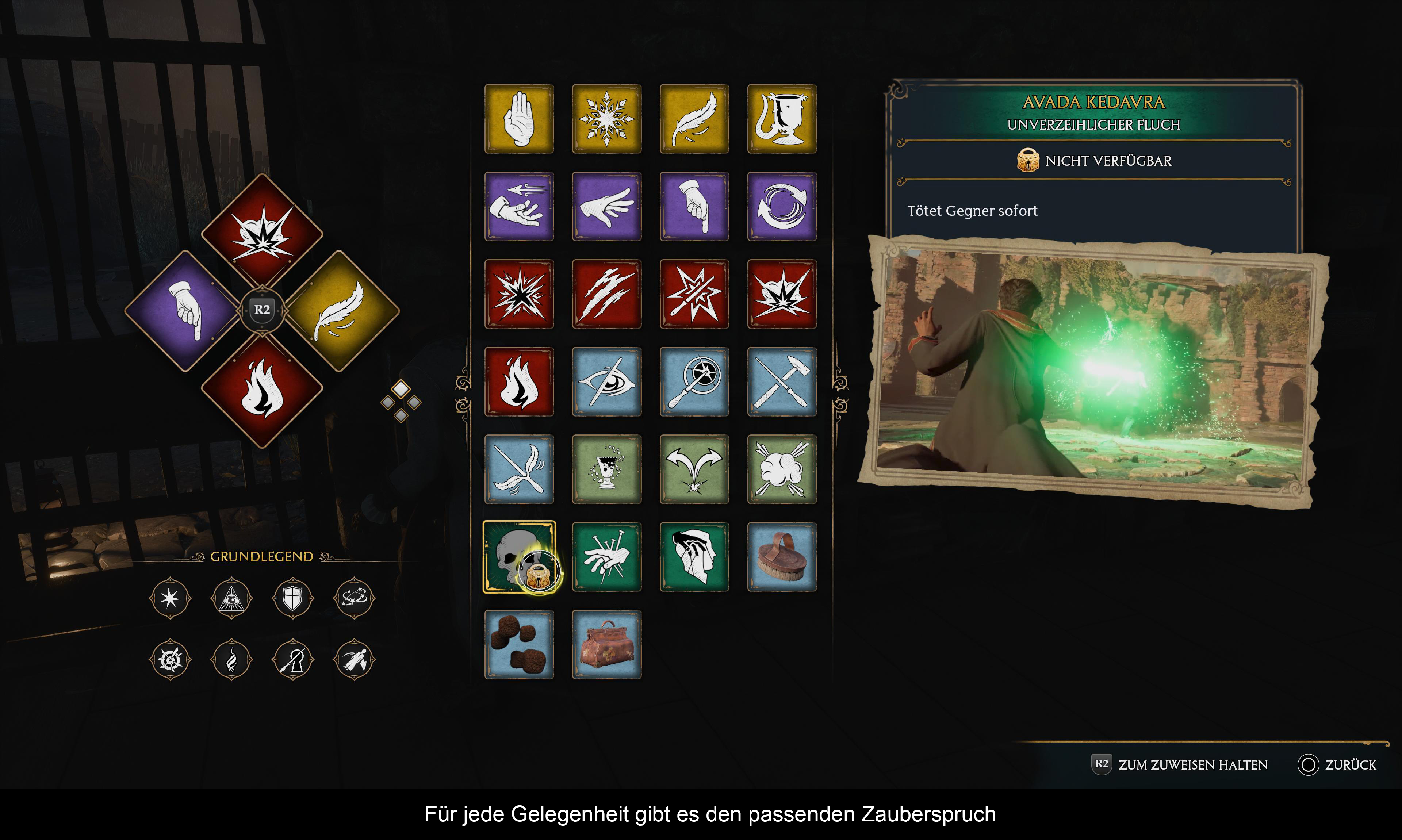 Gamplaytechnisch möchte ich hier mit dem Kampfsystem beginnen, denn dies ist definitiv ein Highlight. Seit den ersten Präsentationen habe ich mich gefragt, wie es die Entwickler lösen wollen und das Ergebnis fällt recht beeindruckend aus. Vorweg ist zu erwähnen, dass man sich hier sehr viele Freiheiten erlaubt hat, um es spaßig zu gestalten - ich hoffe die Potterheads können darüber hinwegsehen. Unsere Heldin oder Held ist mit einem Standardzauber ausgestattet, welcher bei Gegnern einfachen Schaden verursacht. Daneben kann man mit R2 und den Symboltasten noch vier weitere Zauber sprechen. Offensive Sprüche, wie Bombarda, welcher eine Explosion auslöst, Bewegungszauber wie Depulso, welcher Gegner wegstößt, oder Kontrollzauber wie Glacius, welcher Gegner kurzzeitig erstarren lässt. Je nach Stärke der Zauber haben diesen einen Cooldown und können so nicht unzählig oft hintereinander verwendet werden. Später schaltet man noch weitere Zaubersets frei, so dass man im Kampf auf insgesamt 16 Zaubersprüche zugreifen kann. Dies wird auch bitter nötig sein, spätestens wenn die Gegner in Scharen angreifen und sich mit farblich codierten Schilden schützen. Diese lassen sich nur mit Zaubersprüchen des gleichen Typs zerbrechen. Aber auch selber verfügt man über einen Schild, welchen man im richtigen Moment zum Kontern aktivieren kann. Durch diese Fähigkeiten entsteht ein graziles Zauberfeuerwerk, welches einerseits spaßig ist, aber andererseits auch nicht zu komplex wird. Man fühlt sich einfach als übermächtiger Zauberer und wirft nur so mit Zaubersprüchen um sich (oder auch den Unverzeihlichen Flüchen). Wird es doch mal brenzlig, kann man auf verschiedene „Werkzeuge“ wie die Alraune zurückgreifen, oder man bedient sich einem Zaubertrank, welcher unverwundbar macht. Reicht dies noch immer nicht, hat man ja noch als Spezialangriff die Alte Magie, welche manchen Gegnern ganz schnell den gar aus macht.