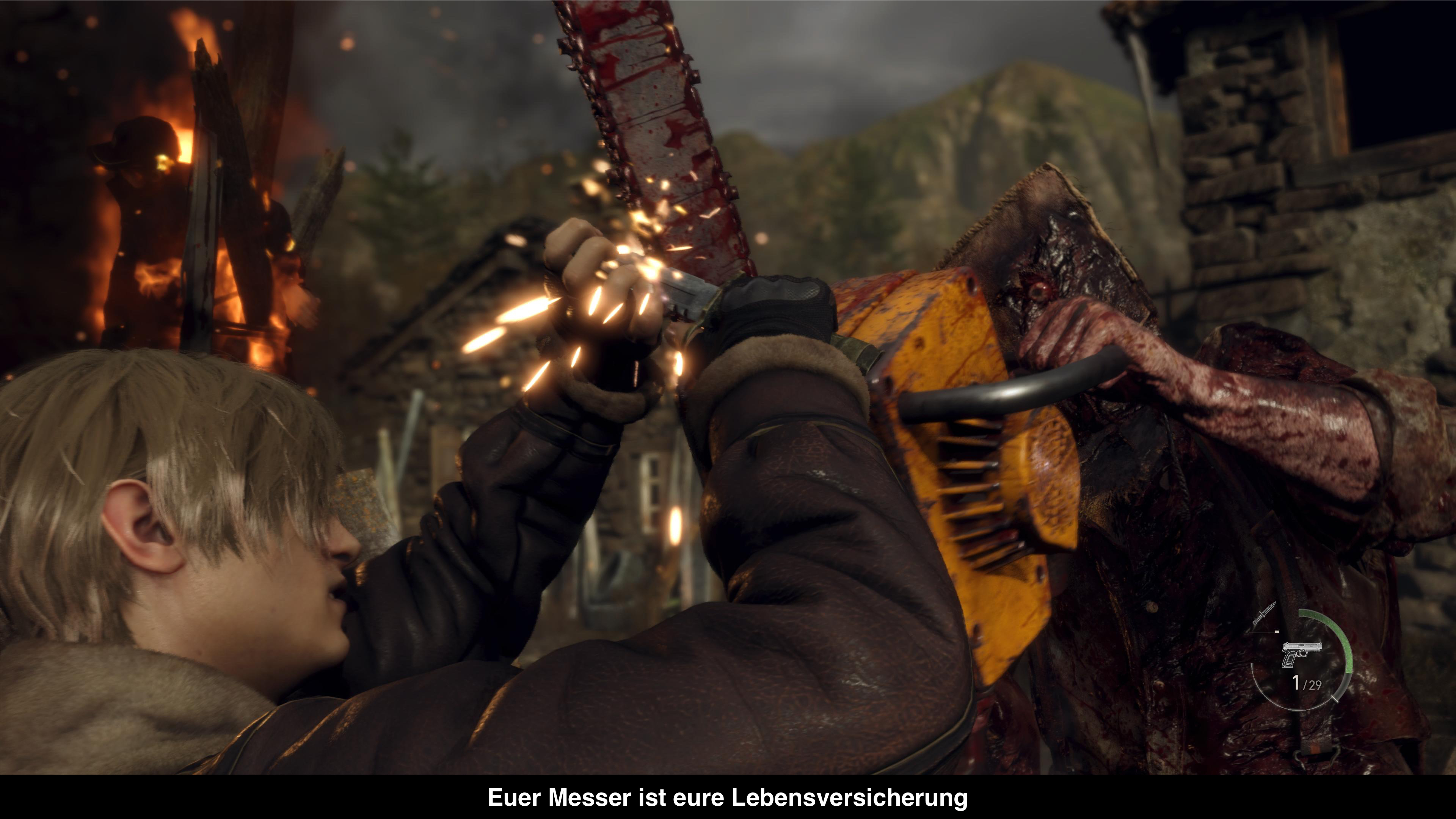 Weil das Original aus der PS2-Generation stammt, mussten die Entwickler wirklich alles neu modellieren und die Arbeit hat sich ausgezahlt. Das Spiel sieht toll aus, bietet viel mehr Details in der Umgebung und überzeugt durch eine realistische und sehr atmosphärische Beleuchtung. Leider ist die Performance nicht ganz dort, wo man sie erwarten würde. So gibt es im Kern einen Auflösungs- und einen Performance-Modus. Im Auflösungs-Modus läuft das Spiel zwar mit 4K, aber auch mit einer nicht limitierten Bildrate. Somit ruckelt das Spiel je nach Szene irgendwo zwischen 30 und 60FPS vor sich her. Warum man keine Framerate Limitierung eingebaut hat, wird wohl nur Capcom wissen. Im Performance-Modus liegt die Auflösung zwar etwas unter 4K, aber dafür schafft man häufiger 60 Bilder pro Sekunde. Die Betonung liegt aber auf häufiger, denn auch hier hat man regelmäßig mit Einbrüchen zu kämpfen. Theoretisch kann man dann noch RayTraced Reflections und Hair-Strands einschalten, was die Performance aber in beiden Grafikmodi verschlechtert. Hair-Strands beschreibt die gleiche Technologie, die man auch in Marvel`s Spider-Man auf der PlayStation 5 gesehen hat und für realistisches Haar sorgen soll. In Resident Evil 4 wirkt der Effekt aber nicht und sieht deutlich schlechter aus. Die RayTraced Reflections sind meist auch kaum erkenntlich bzw. bringen relativ wenig und können getrost ausbleiben. Zudem plagten das Spiel seit Release ein paar Probleme mit der Bildschärfe. Denn aus irgendeinem Grund war insbesondere die Vegetation unheimlich unruhig und sah einfach nicht gut aus. Mit einem aktuellen Patch hat Capcom das Problem aber glücklicherweise behoben. Unterm Strich läuft das Spiel somit nicht wirklich rund, immerhin kann ein VRR-fähiger Fernseher hier Abhilfe schaffen und die meisten Framerate-Probleme ausbügeln. In Sachen Musik und Sprachausgabe gibt es nichts zu meckern. Hier erhält man einen atmosphärischen Soundtrack und die Sprecher machen ihren Job wie immer sehr gut.