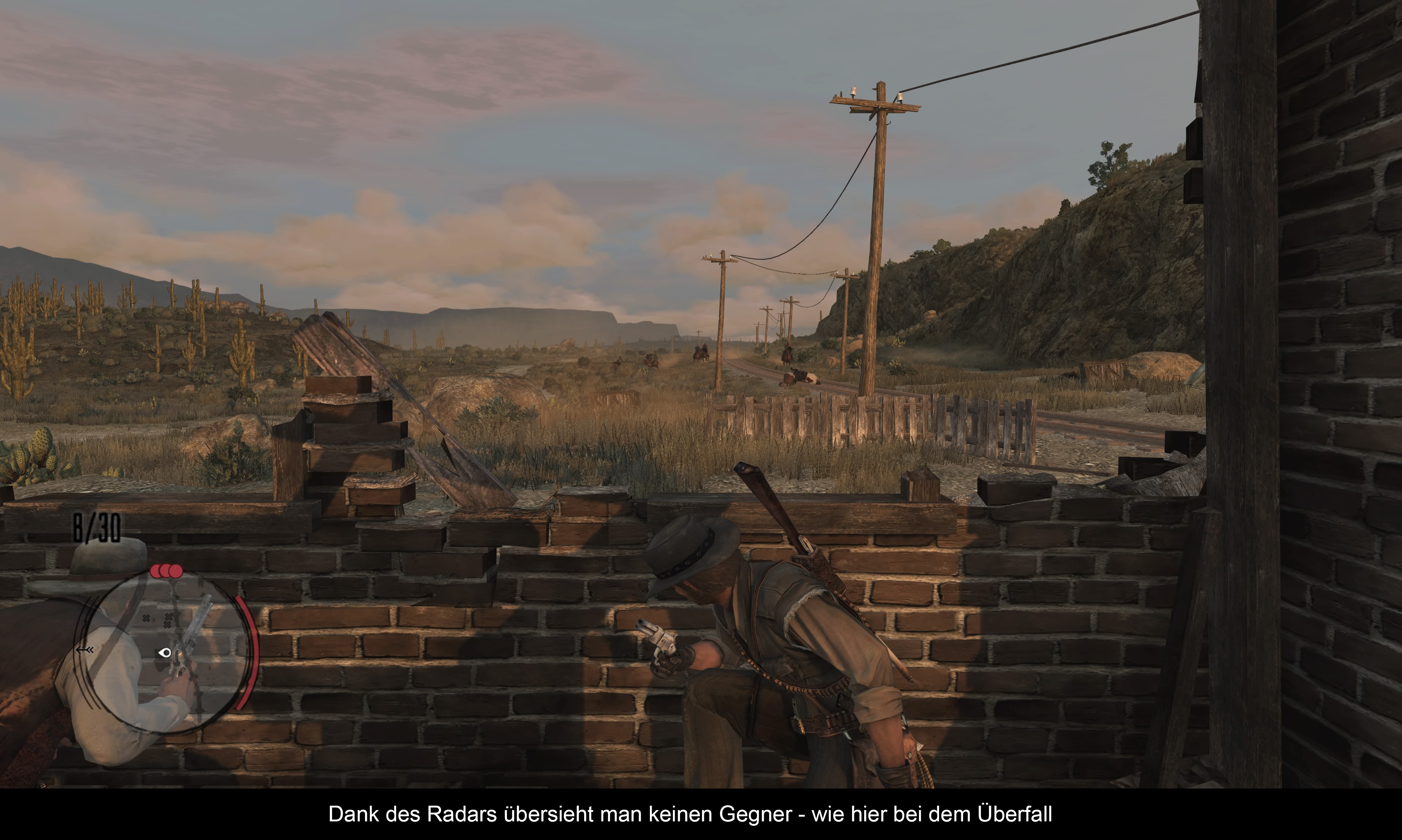 Bei der Steuerung darf man keine Wunder erwarten. Sie ist funktional und orientiert sich an den „GTA“-Spielen. Eine optionale Zielhilfe macht es leichter, die Gegner anzuvisieren und via Knopfdruck springt Marston hinter eine Deckung. Zum Rennen (oder Galoppieren) muss man dagegen wiederholt die X-Taste drücken. Das war alles damals schon keine Meisterleistung und im Vergleich mit anderen Actiongames wesentlich steifer und schwerfälliger. Letztlich hätte sich hier, dass meiste Potential für eine Verbesserung angeboten. Trotzdem zählt die Steuerung in „Red Dead Redemption“ noch zu den besseren in den unzähligen Open World Spielen von Rockstar Games.